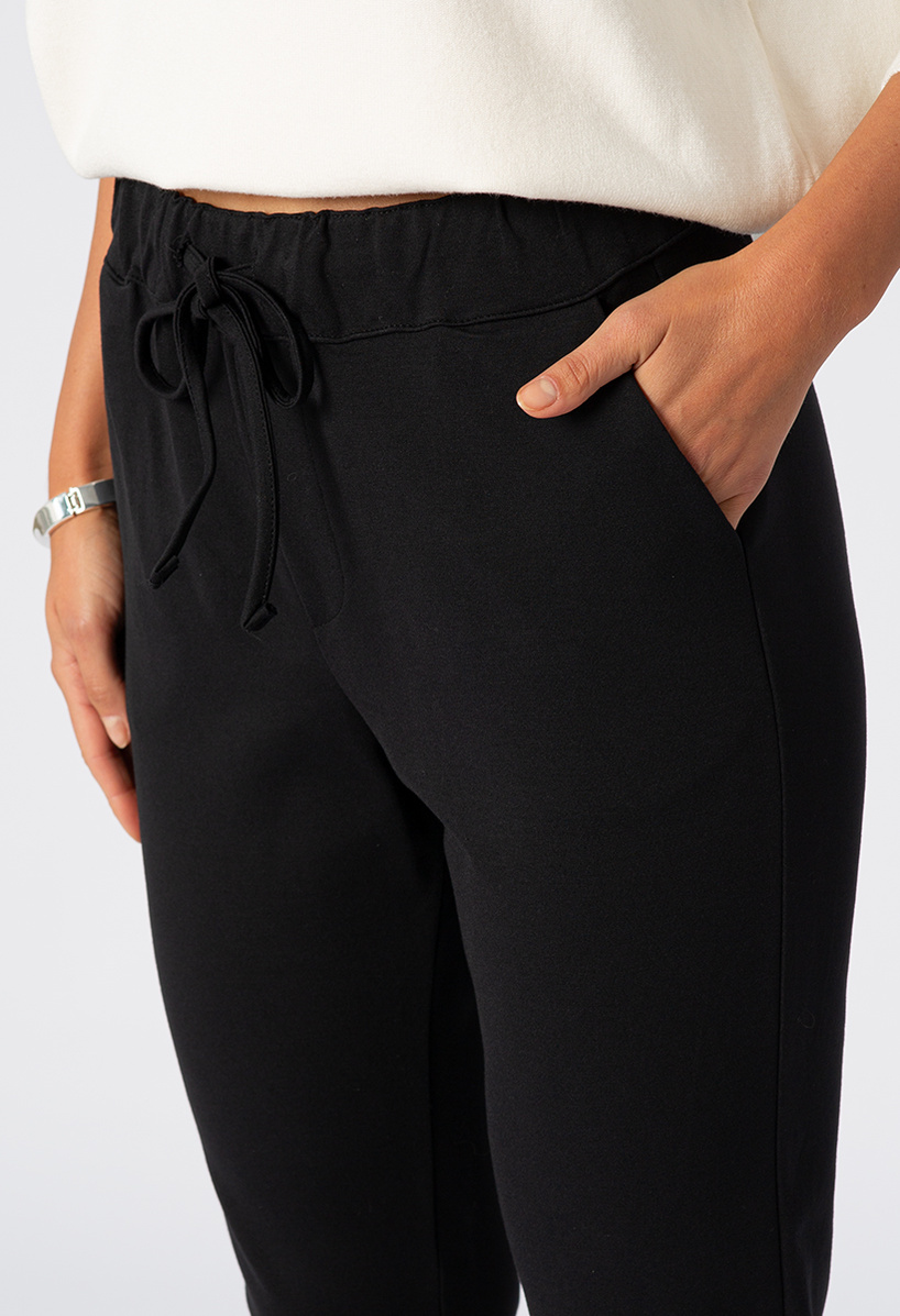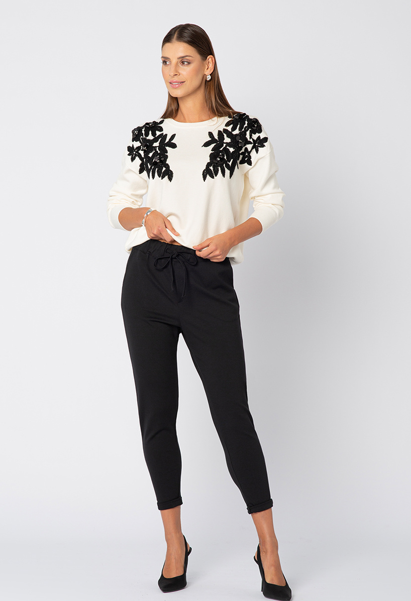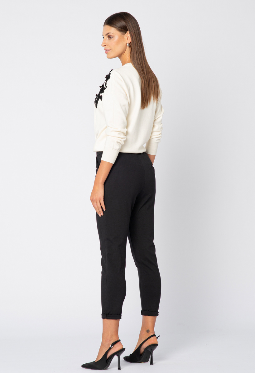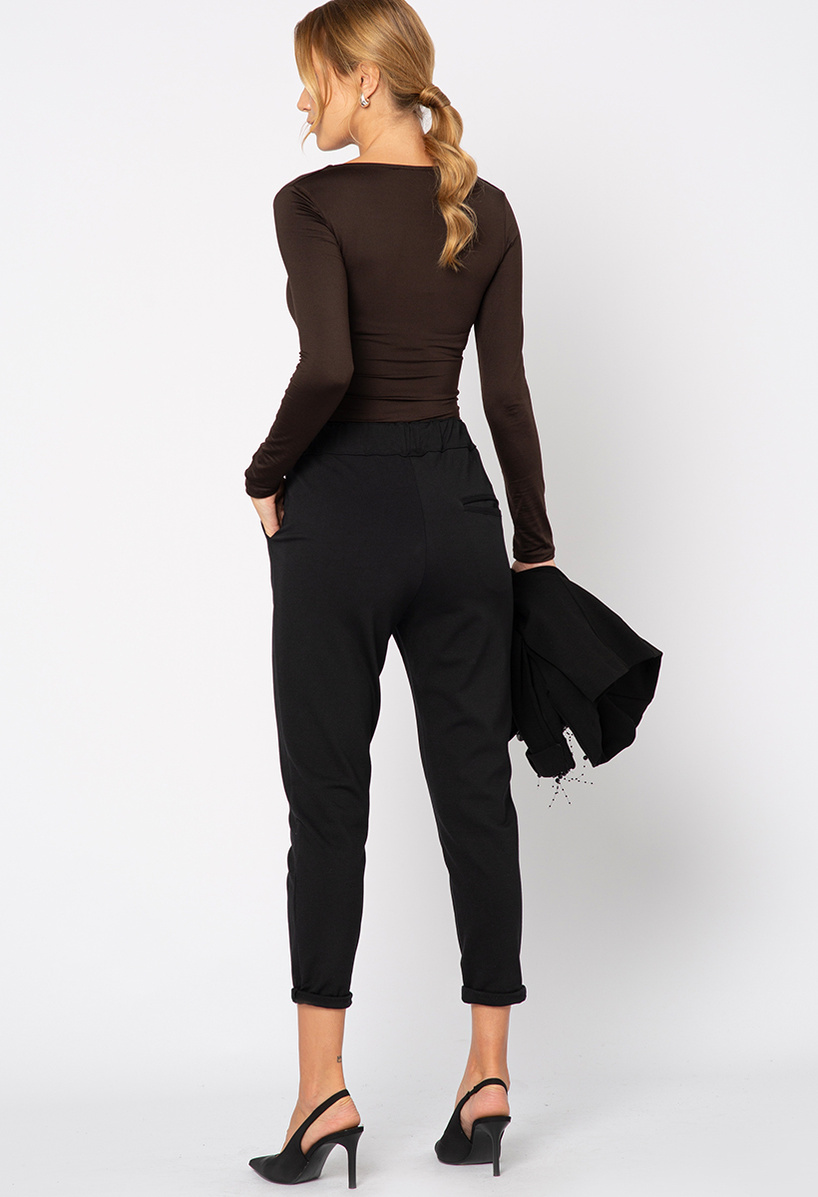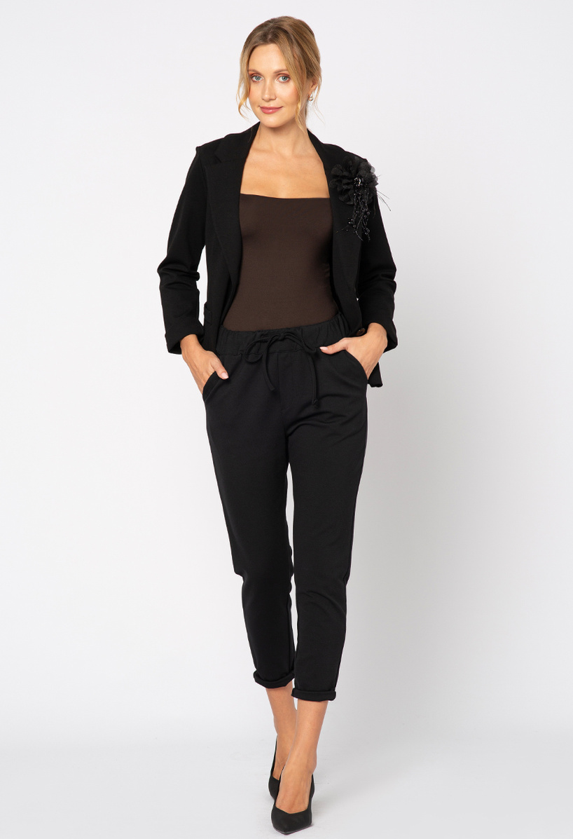 Czarne spodnie z troczkiem
