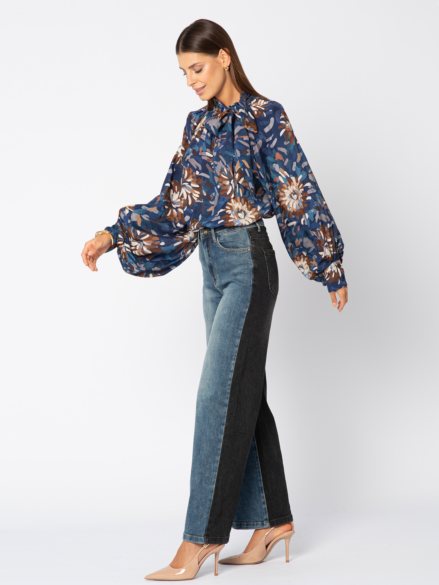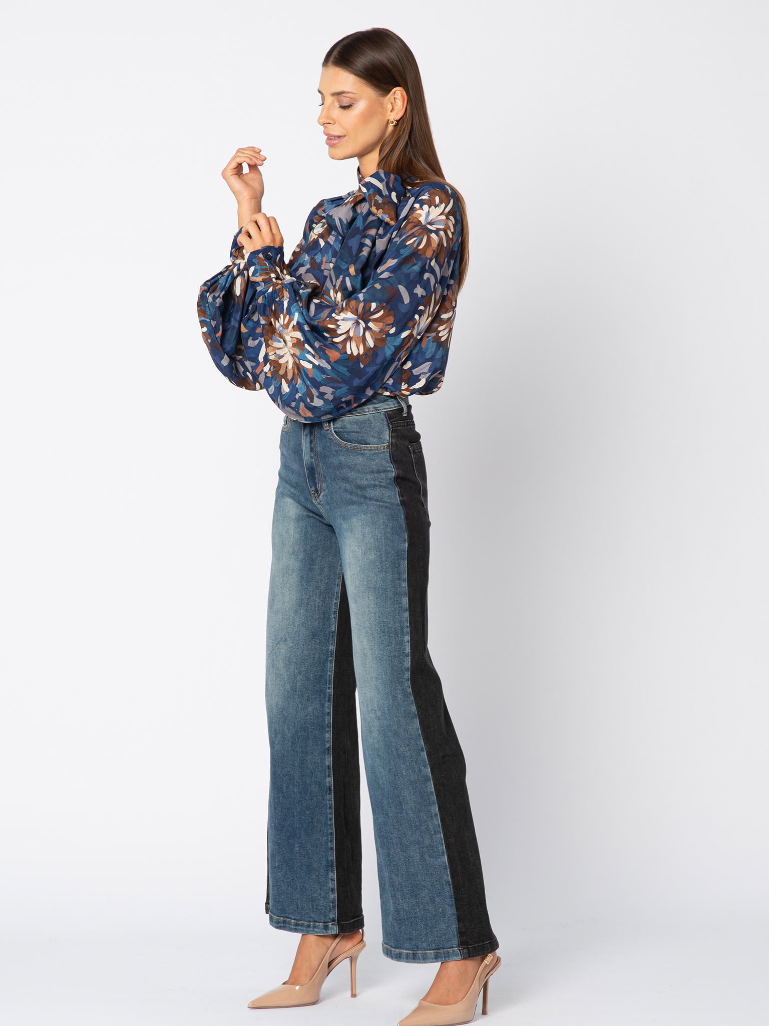 - Wyobraź sobie jeansy, które od razu przyciągają spojrzenia – kontrast jasnego przodu i ciemnego tyłu nadaje im nowoczesny charakter, a proste nogawki i wysoki stan podkreślają sylwetkę.To model, który stanie się najmocniejszym punktem każdej stylizacji.