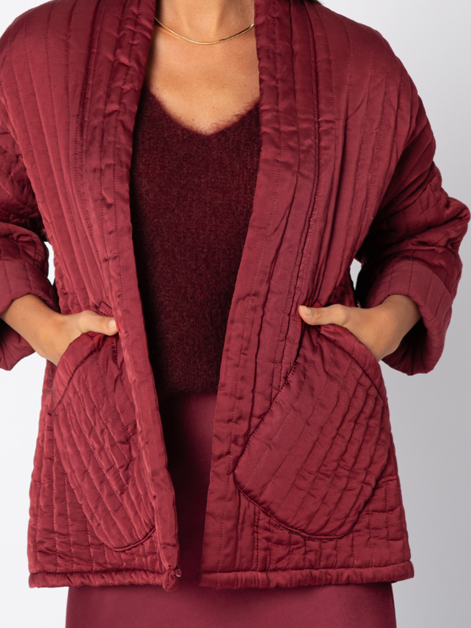 • Jesienny szyk w lekkiej odsłonie. Idealna alternatywa dla marynarki, która nadaje stylizacji więcej swobody i nowoczesnego charakteru. Podłużne pikowanie subtelnie wysmukla sylwetkę i nadaje całości eleganckiej lekkości.