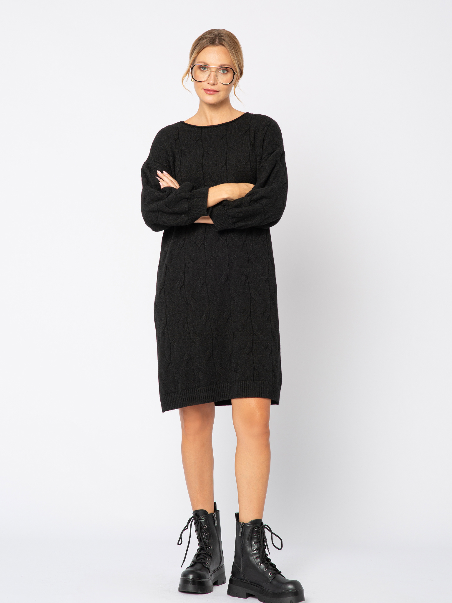 Otul się miękkością i ponadczasowym stylem — dzianinowa sukienka o splocie warkoczowym to kwintesencja jesiennej elegancji w wersji effortless chic. Jej prosty krój i długość przed kolano nadają sylwetce lekkości, a rękaw 3/4 i okrągły dekolt sprawiają, że pozostaje uniwersalna i niezwykle kobieca. Wykonana z przyjemnej w dotyku dzianiny, w wersji one size, doskonale dopasowuje się do sylwetek od S do L. To model, który łączy w sobie komfort, styl i subtelny luksus, który będzie towarzyszyć Ci na co dzień.