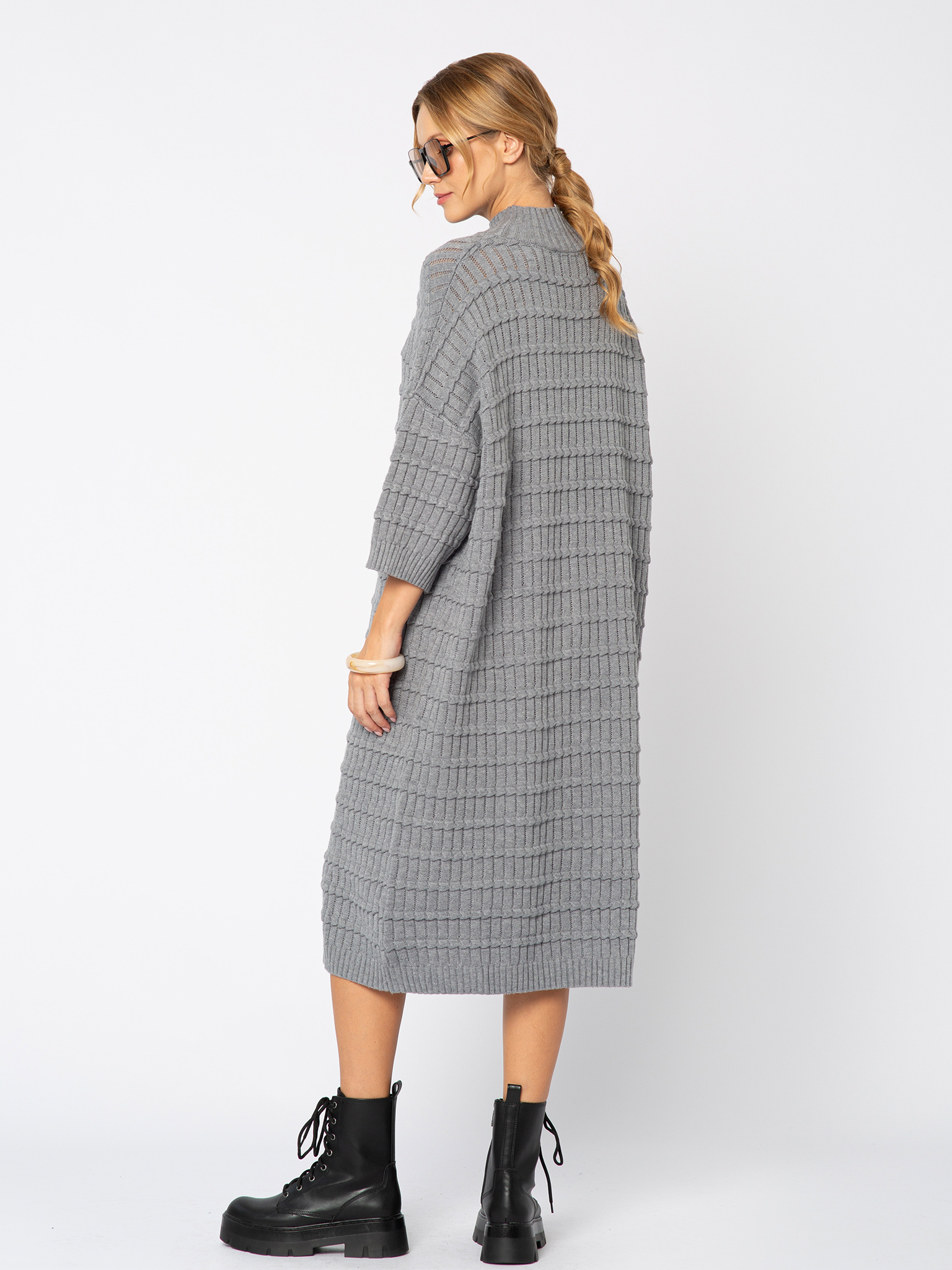 Dzianinowa szara sukienka z półgolfem