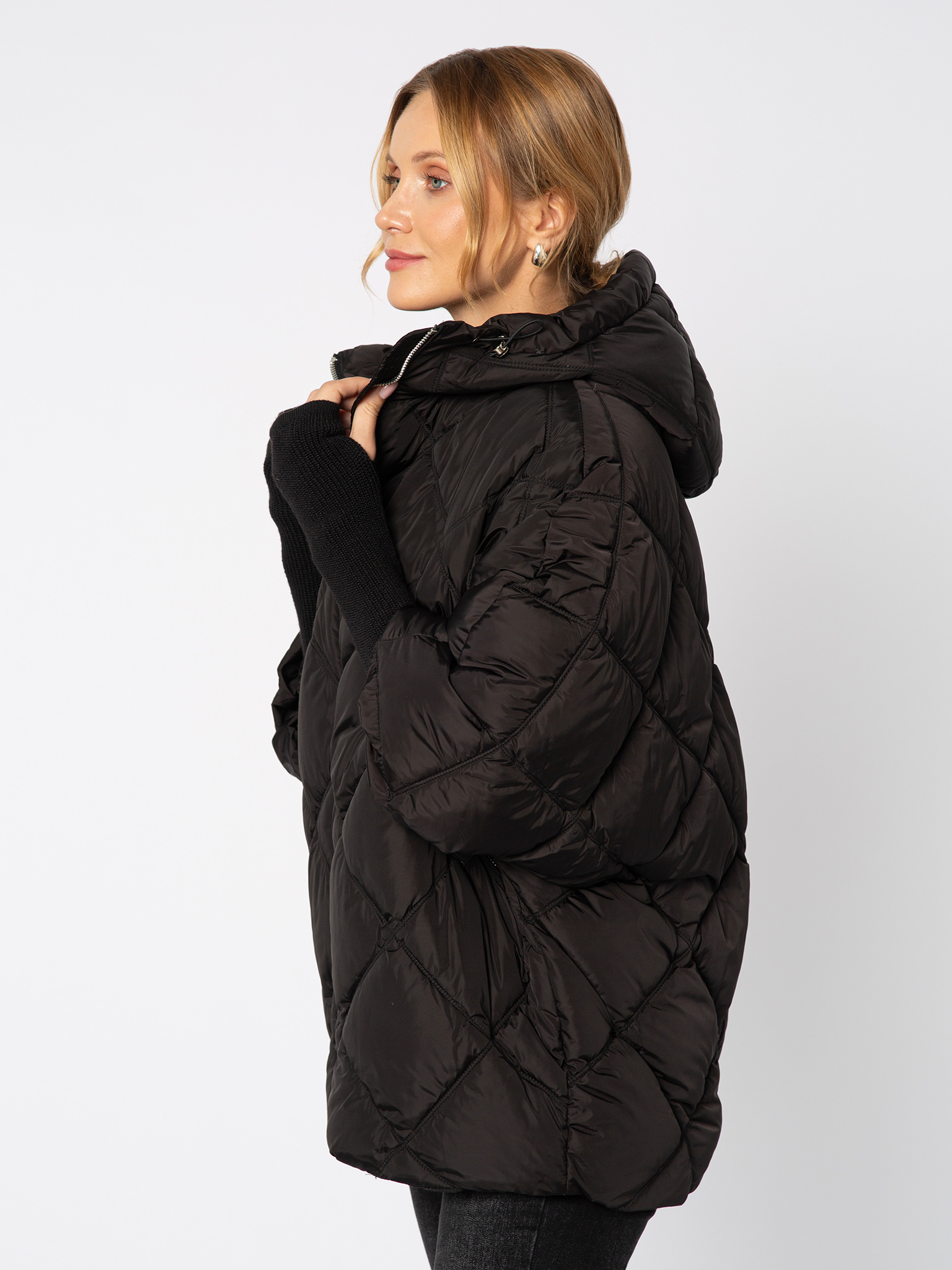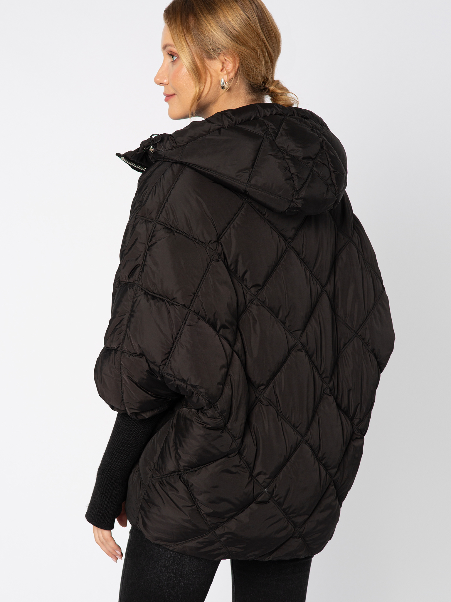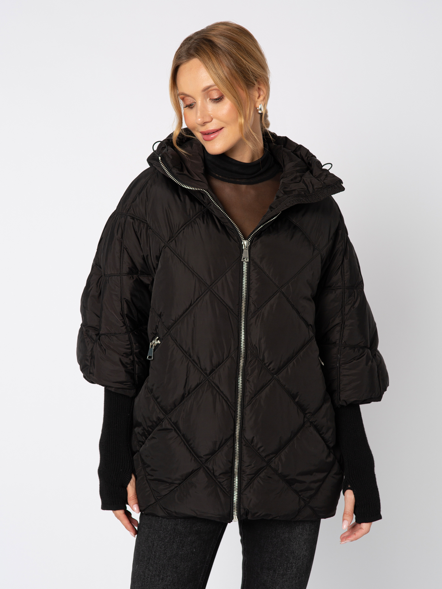Otulająca i nowoczesna — czarna pikowana kurtka z dzianinowymi rękawami to idealne połączenie elegancji i komfortu. Miękka, ciepła i przyjemna w dotyku, zapinana na suwak, stanie się niezastąpionym elementem Twojej garderoby na chłodniejsze dni. To model, który łączy miejski luz z wyrafinowanym stylem.