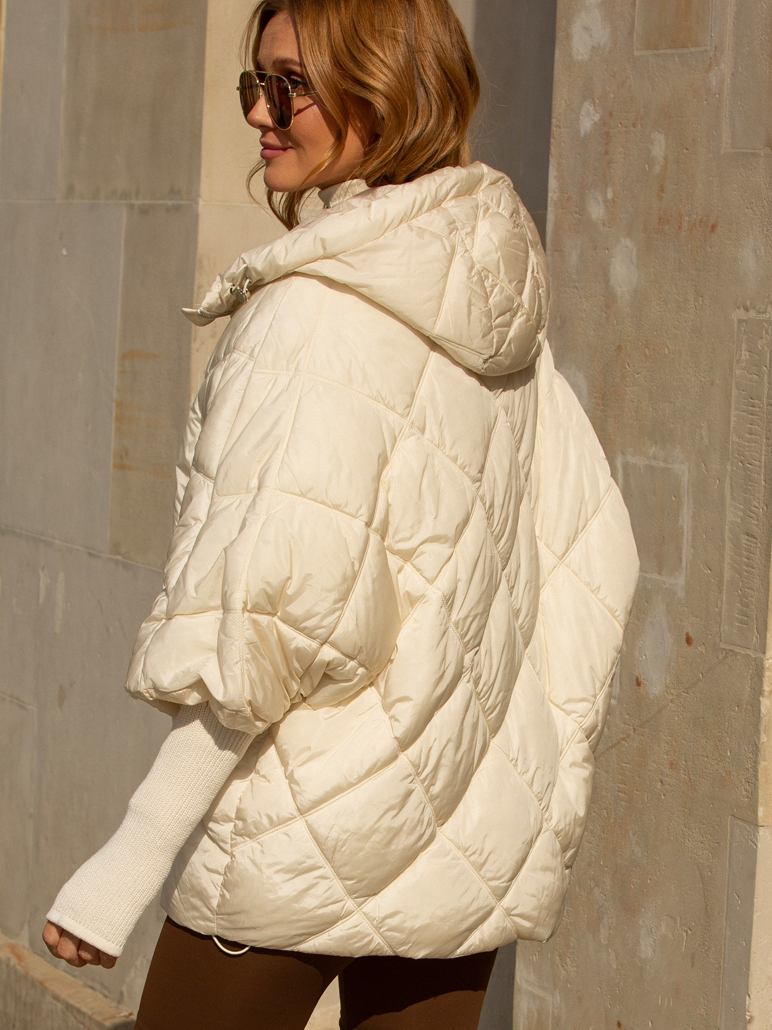 Otulająca i nowoczesna — pikowana kurtka w odcieniu ecru z dzianinowymi rękawami to idealne połączenie elegancji i komfortu. Miękka, ciepła i przyjemna w dotyku, zapinana na suwak, stanie się niezastąpionym elementem Twojej garderoby na chłodniejsze dni. To model, który łączy miejski luz z wyrafinowanym stylem.