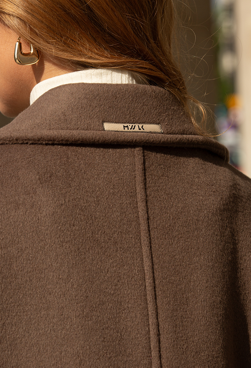 Otul się elegancją — szeroki płaszcz w odcieniu Mocha Mouse to połączenie minimalizmu i nowoczesnej formy. Jego wyjątkowym akcentem jest pikowany kołnierz i rękawy, które dodają całości wyrafinowanego charakteru. Kołnierz można odpiąć, dzięki czemu płaszcz zyskuje dwa różne oblicza: bardziej klasyczne lub nowoczesne. Oversize’owy krój w rozmiarze one size sprawia, że pięknie układa się na sylwetce, a przy tym jest niezwykle wygodny i otulający. To model stworzony, by towarzyszyć Ci zarówno w codziennym biegu, jak i w eleganckich stylizacjach.