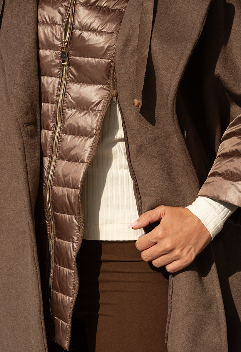 - Otul się elegancją. To połączenie minimalizmu i nowoczesnej formy. Jego wyjątkowym akcentem jest pikowany kołnierz i rękawy, które dodają całości wyrafinowanego charakteru. Kołnierz można odpiąć, dzięki czemu płaszcz zyskuje dwa różne oblicza.