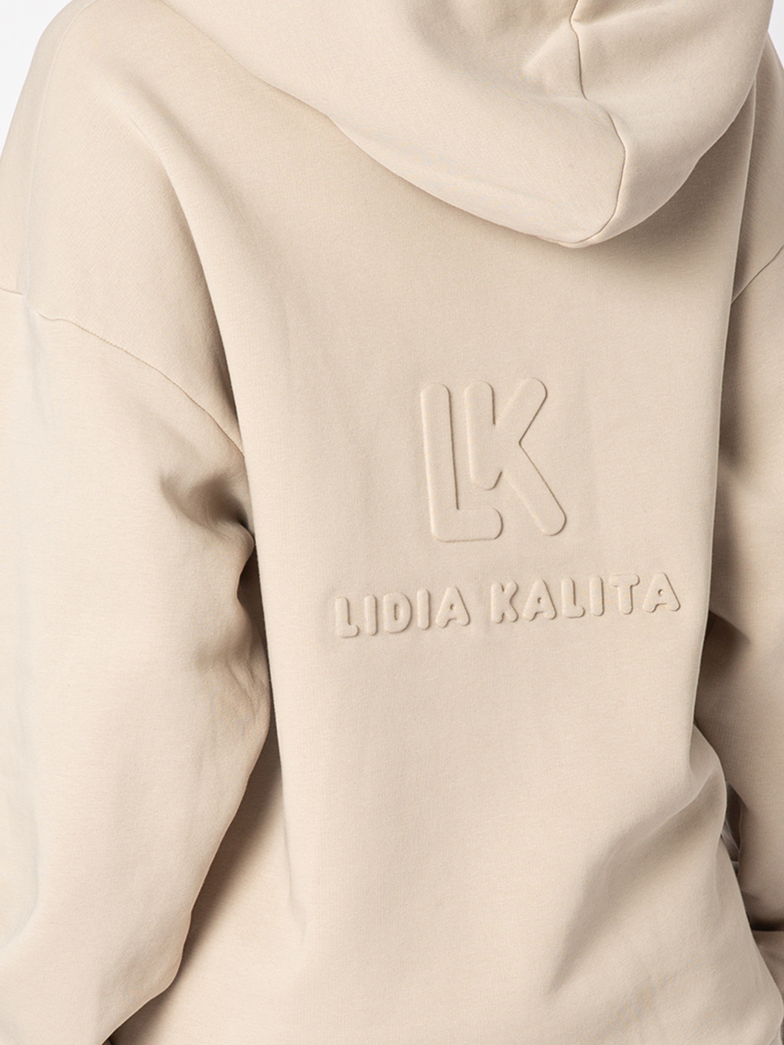 Stylowa i wygodna jak Twój ulubiony poranny rytuał — rozpinana bluza z kapturem w odcieniu Latte z kolekcji Coffee in Paris otula miękkością i subtelnością. Subtelne tłoczenie logo Lidia Kalita z tyłu, kieszenie i przyjemny w dotyku kaptur sprawiają, że każda chwila w tej bluzie smakuje jak spokojna kawa w ulubionej paryskiej kawiarni.