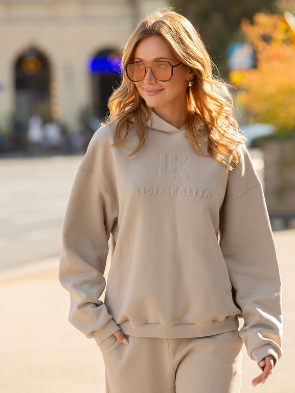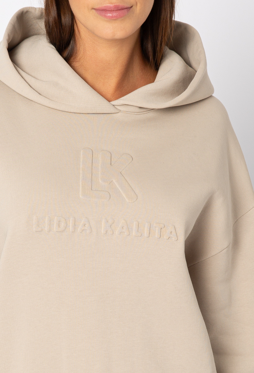 Delikatna i subtelna jak kremowa latte — bluza z kapturem w odcieniu taupe z kolekcji Coffee in Paris łączy codzienny komfort z nowoczesnym szykiem. Minimalistyczny krój i subtelne tłoczenie logo Lidia Kalita sprawiają, że to model, w którym poczujesz się elegancko nawet w casualowych momentach.