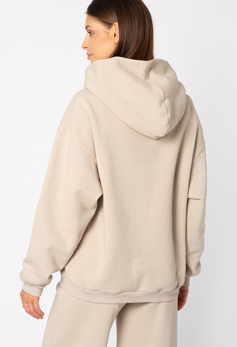 Wykonana z miękkiej, drapanej bawełny z certyfikatem OEKO-TEX Standard 100, bluza otula przyjemnym ciepłem i komfortem. Idealna na poranną kawę w domu, spotkanie w rytmie „Coffee time” czy chwilę relaksu po intensywnym dniu — po prostu na momenty, kiedy chcesz poczuć codzienny luksus i harmonię.