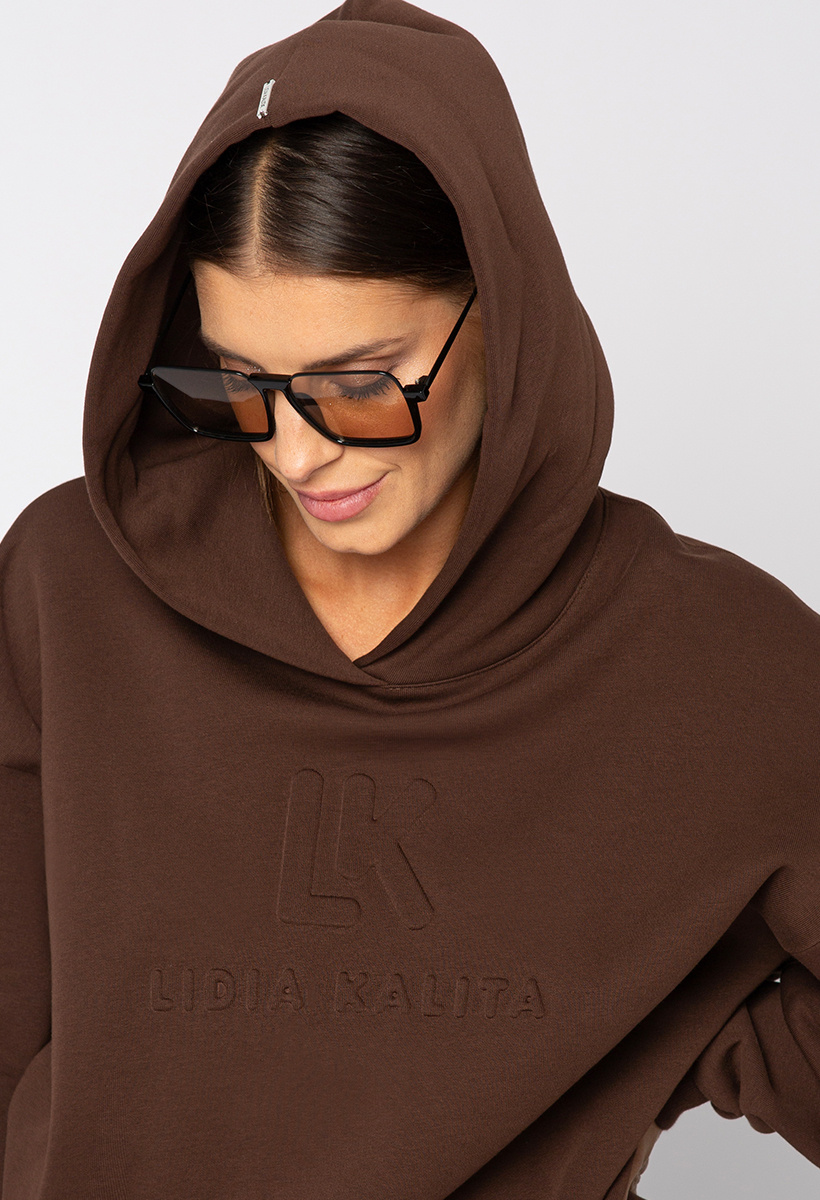• Słodka i wciągająca jak filiżanka gorącej czekolady. Eesencja przytulnego luksusu. Klasyczny fason z kapturem, subtelne tłoczenie z logo Lidia Kalita z przodu i elegancki, czekoladowy odcień sprawiają, że to model, po który będziesz sięgać każdego dnia.