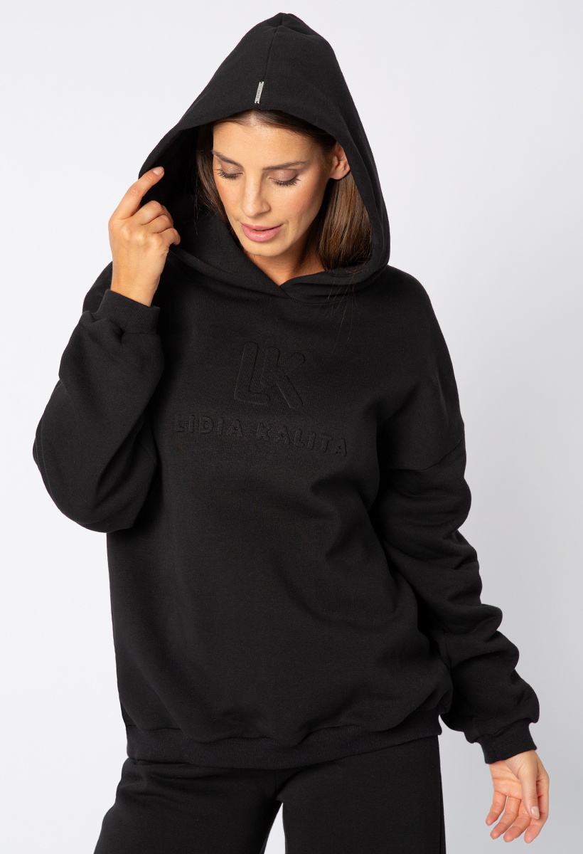 Intensywna jak filiżanka espresso — czarna bluza z kapturem z kolekcji Coffee in Paris to klasyk, który nigdy nie wychodzi z mody. Minimalistyczny krój, tłoczenie z logo Lidia Kalita z przodu i miękka bawełniana dzianina tworzą duet, który otula komfortem i elegancją jednocześnie.