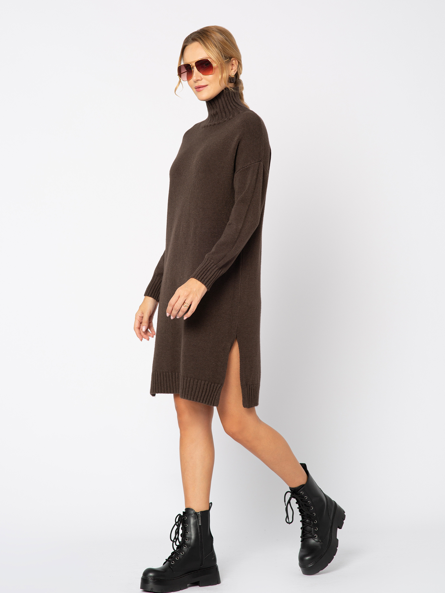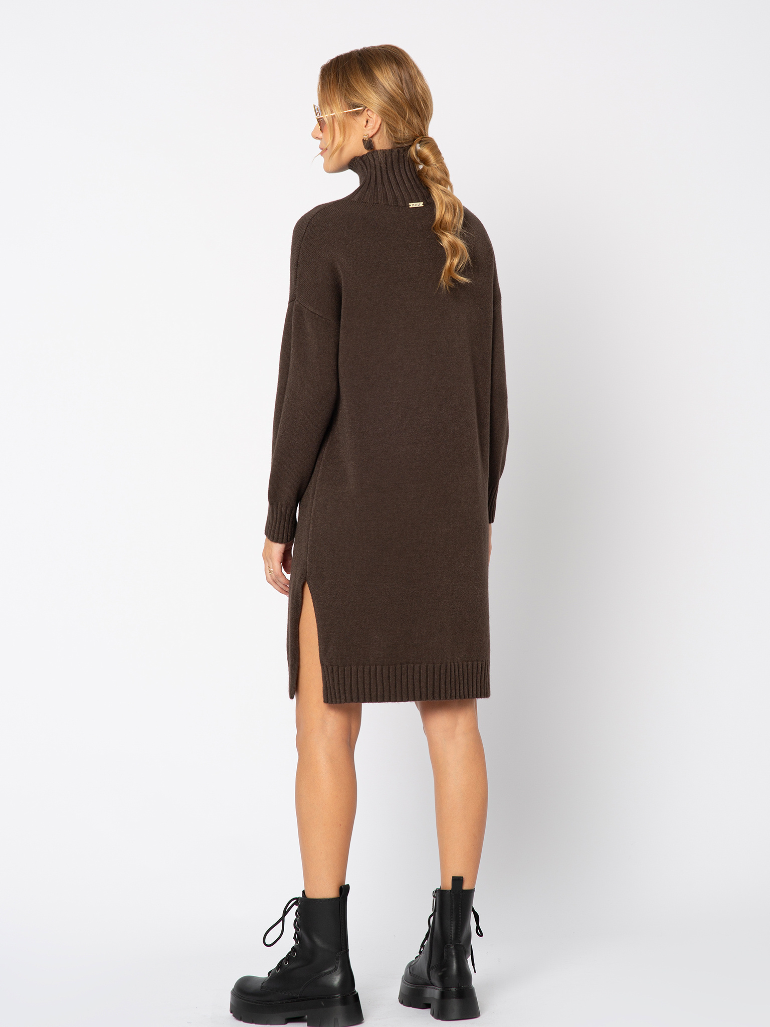 Brązowa dzianinowa sukienka z golfem