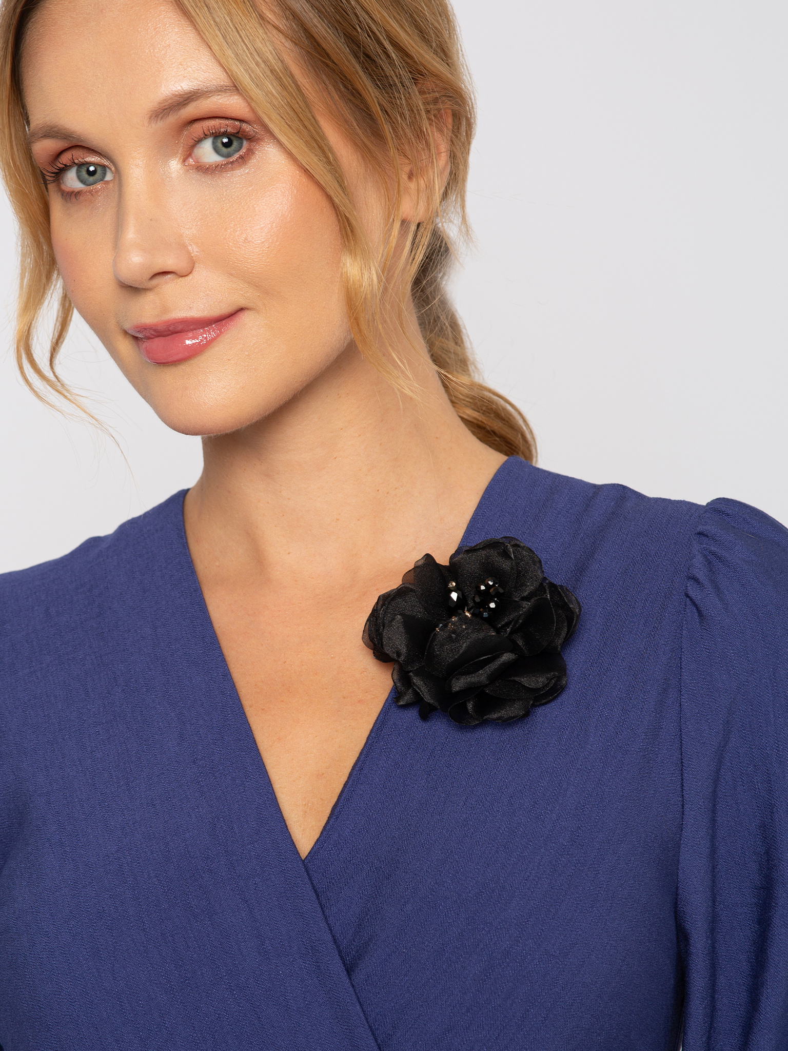 Czarna malutka broszka kwiat z kryształkami