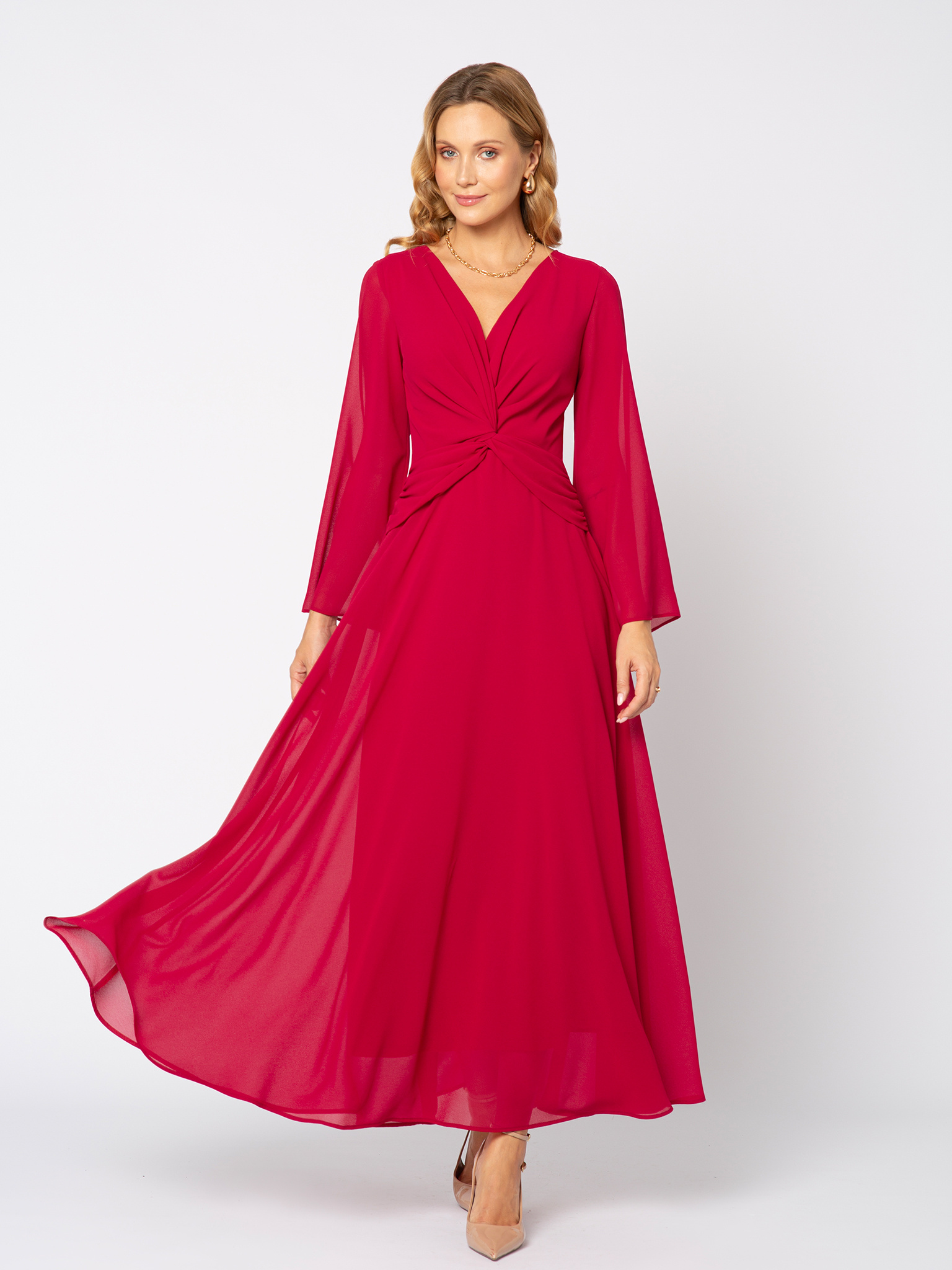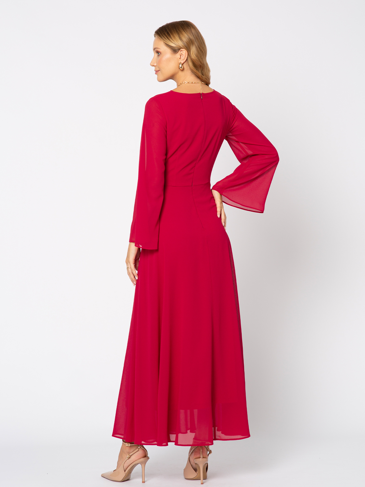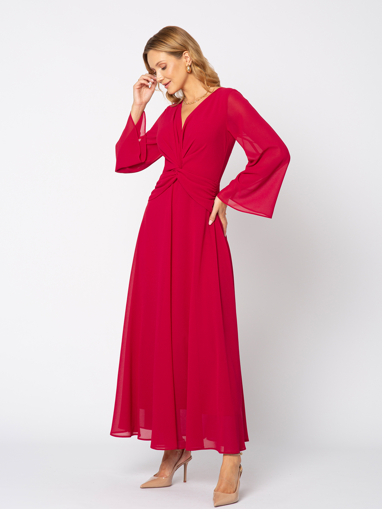 Sukienka w kolorze karminowym z ozdobną talią i szerszym rękawem Magdalene