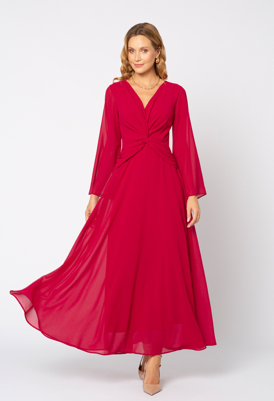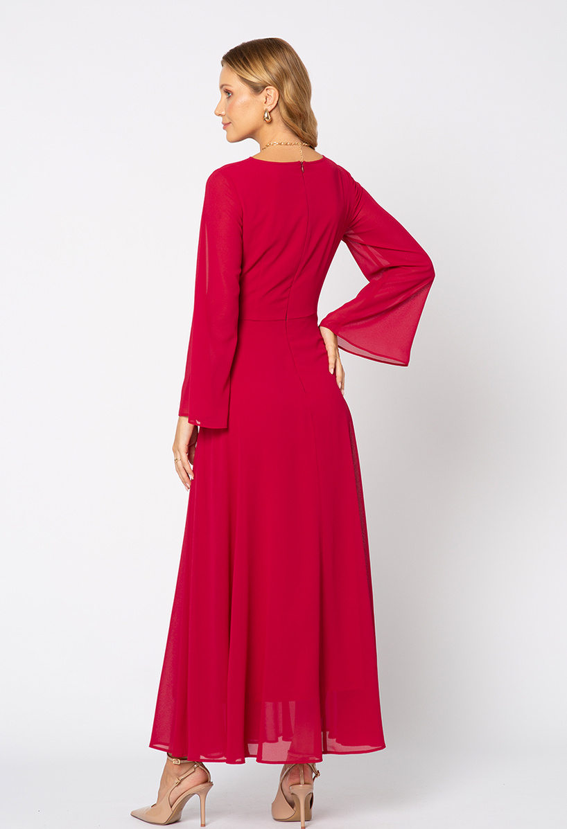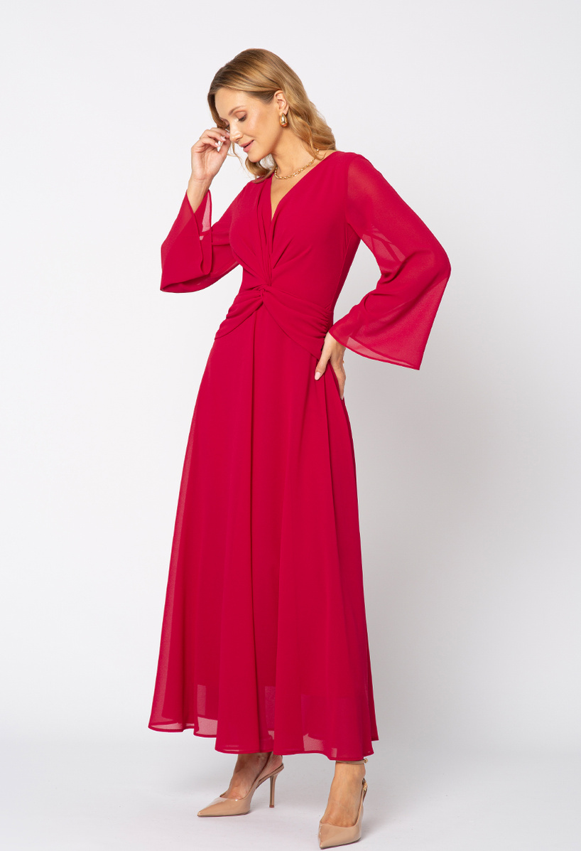 Sukienka w kolorze karminowym z ozdobną talią i szerszym rękawem Magdalene