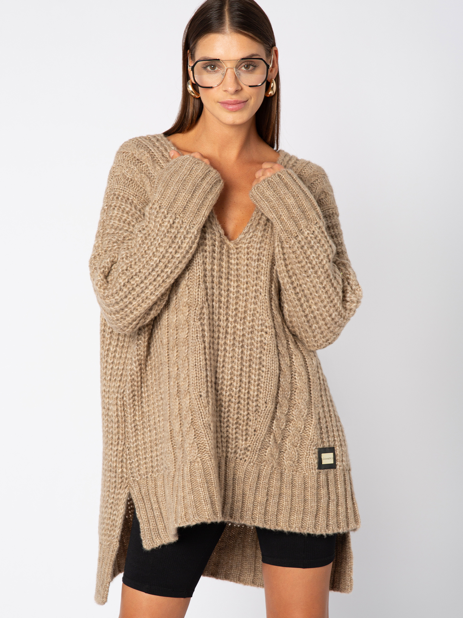 Wyobraź sobie spacer po Jardin du Luxembourg, gdzie elegancja spotyka się z nonszalancją paryskiego stylu. Sweter Luxembourg otula miękkością, a jego oversizowy krój z dłuższym tyłem i krótszym przodem nadaje sylwetce lekkości i swobody. Głęboki dekolt w serek podkreśla kobiecość, a w chłodniejsze dni możesz zestawić go z transparentnym golfem, tworząc intrygujący, warstwowy look. To model, który łączy codzienny komfort z francuskim wyrafinowaniem.