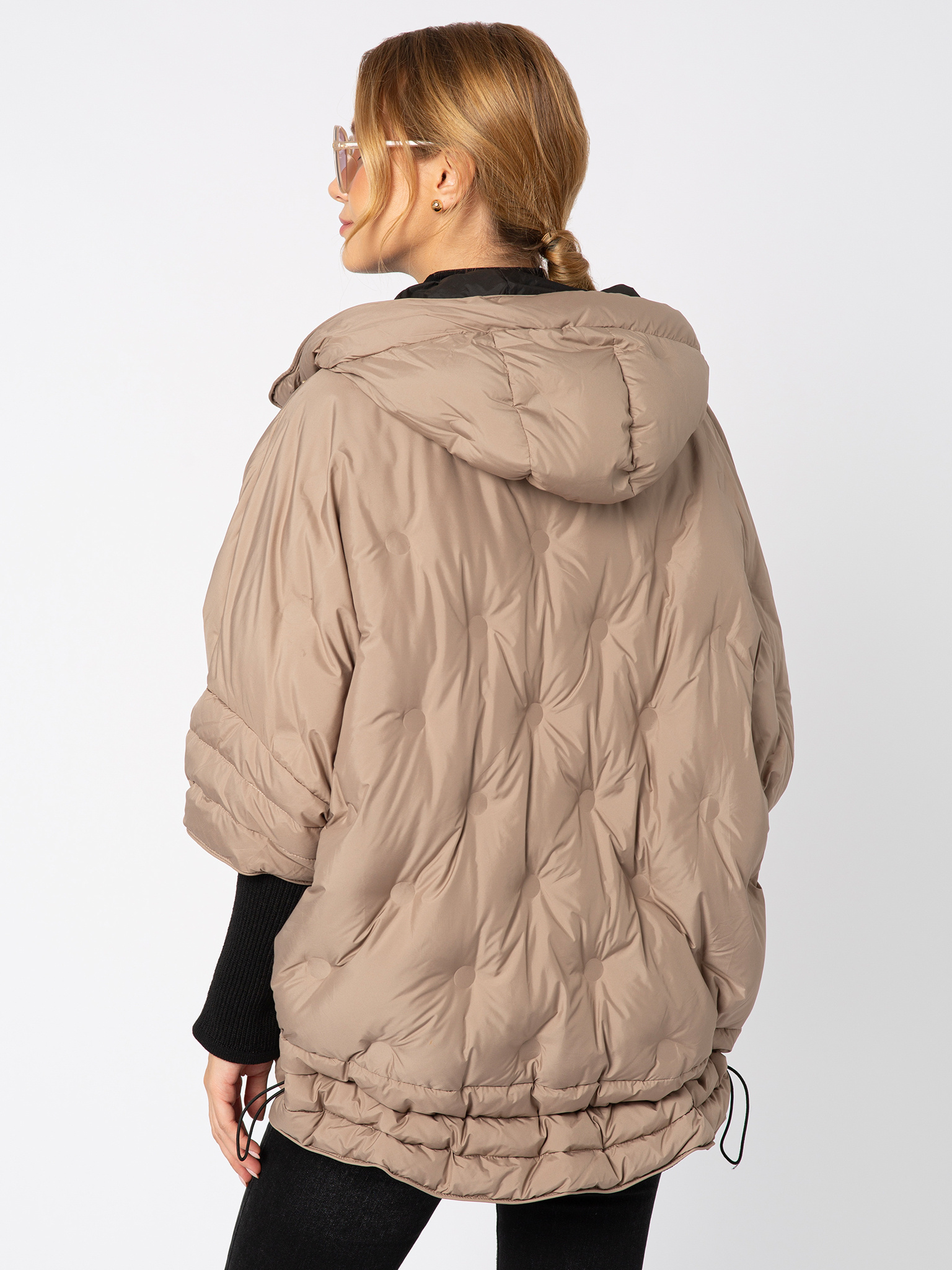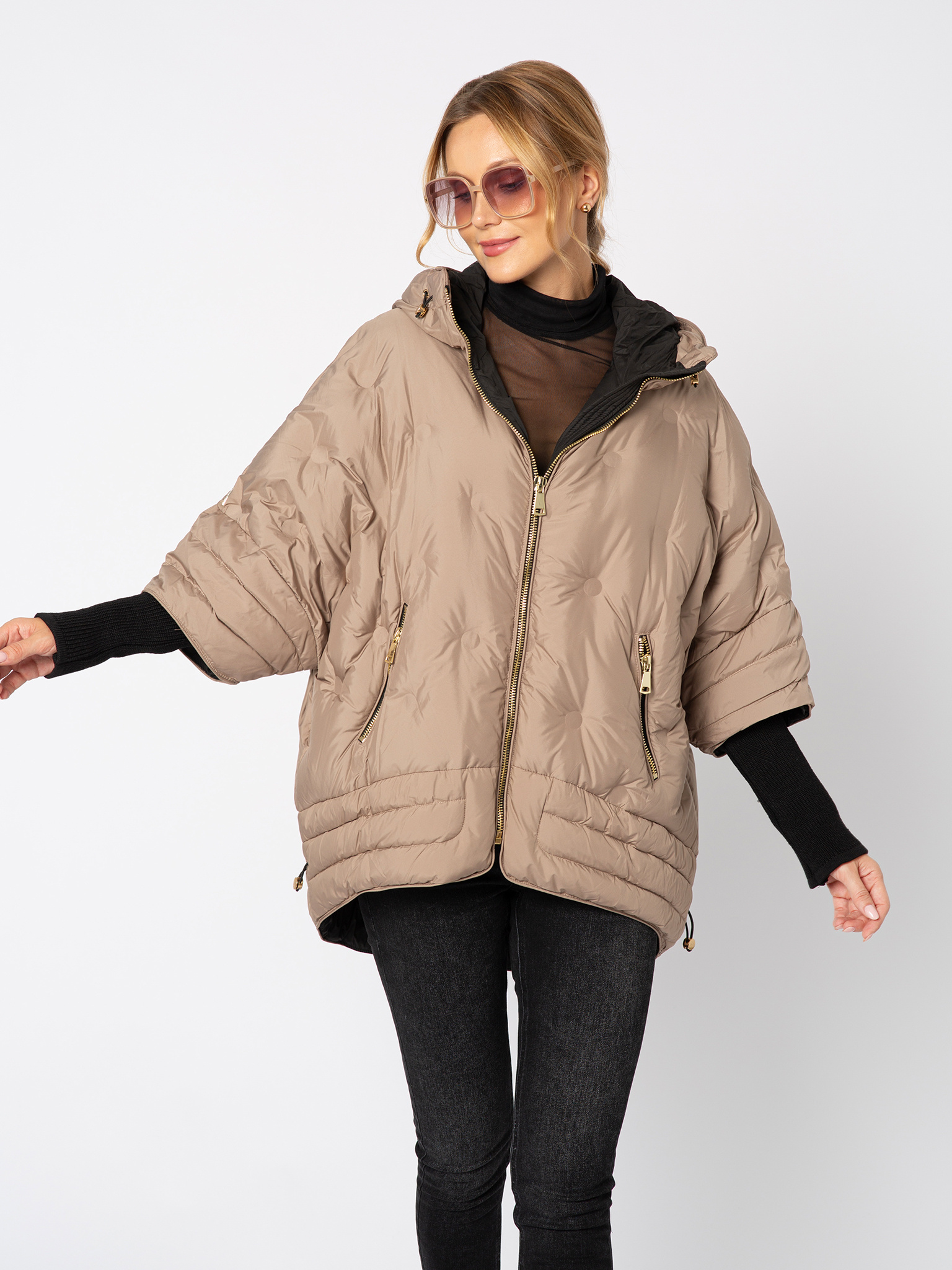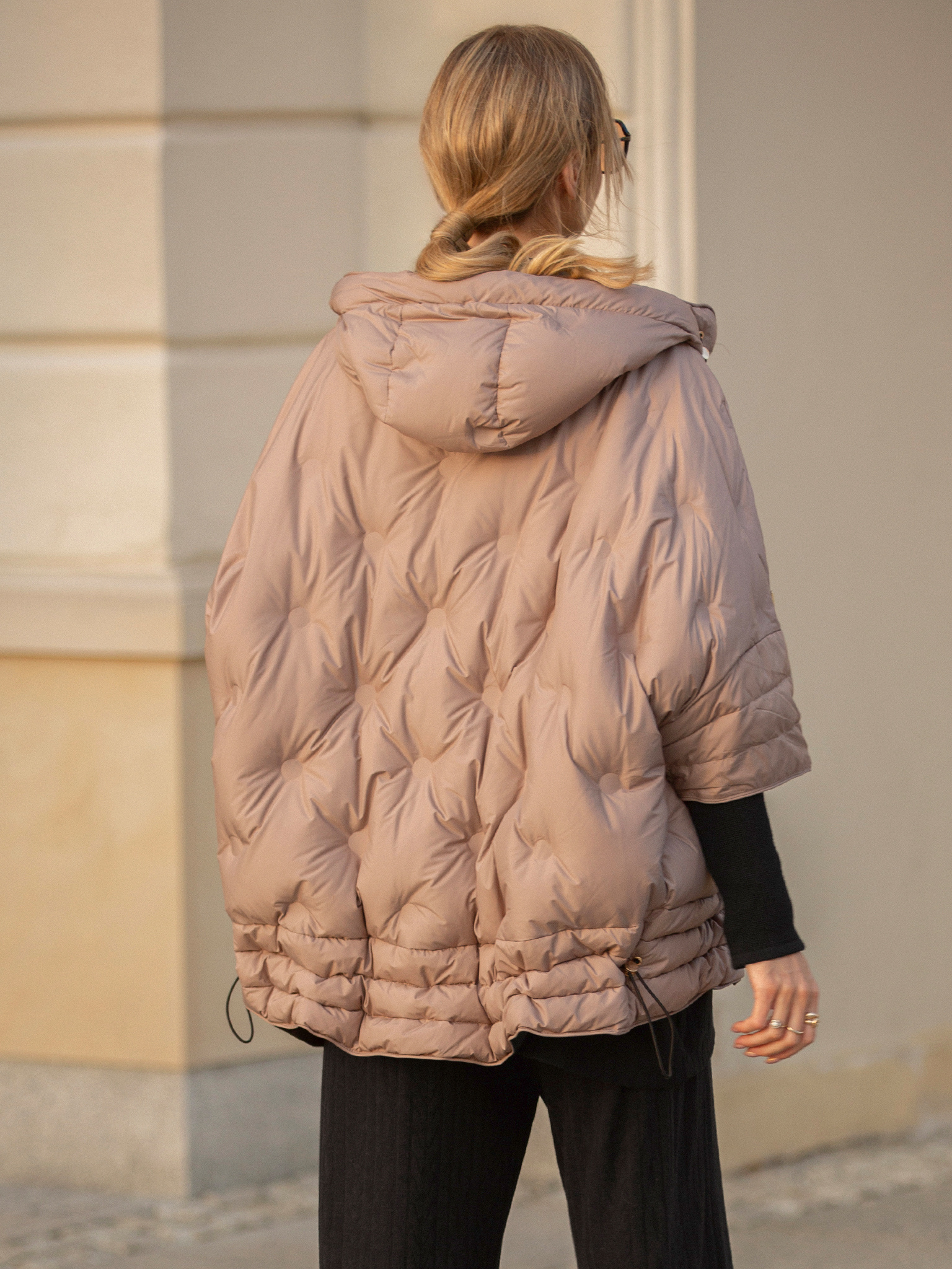 Otulająca i stylowa — beżowa puchowa kurtka z kapturem to idealny balans między komfortem a nowoczesnym designem. Jej lekko oversize’owy krój nadaje sylwetce swobodny charakter, a złoty suwak i detale dodają luksusowego wykończenia. Rękawy zaprojektowane zostały w wyjątkowy sposób: od ramienia do łokcia puchowe, a od łokcia po nadgarstek elastyczne, dzianinowe, co zapewnia wygodę i pełną swobodę ruchów. Dzięki regulowanemu dołowi możesz dopasować kurtkę do sylwetki i skutecznie chronić się przed wiatrem. To model, który łączy w sobie funkcjonalność i miejski szyk — idealny na chłodne dni, gdy nie chcesz rezygnować ze stylu.