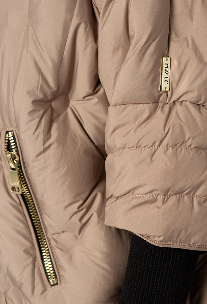 Beżowa puchowa kurtka z kapturem i rękawem ze ściągacza