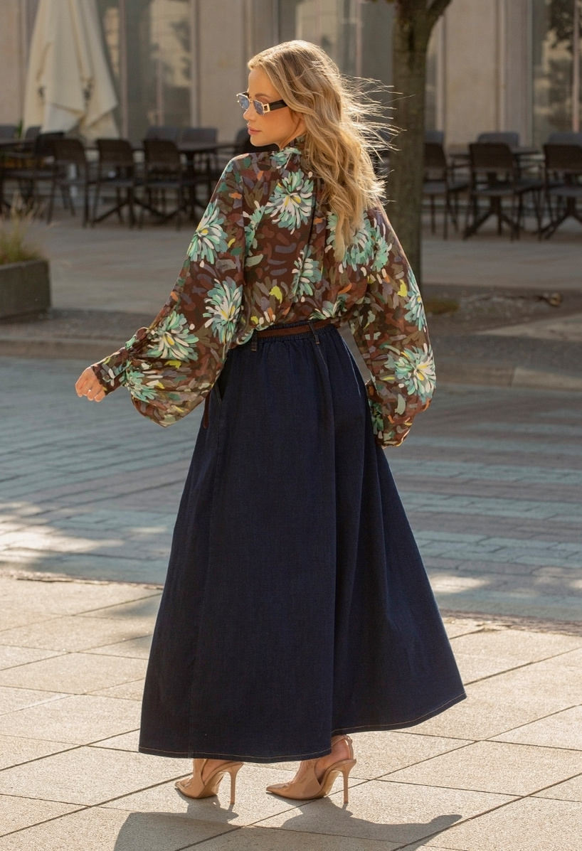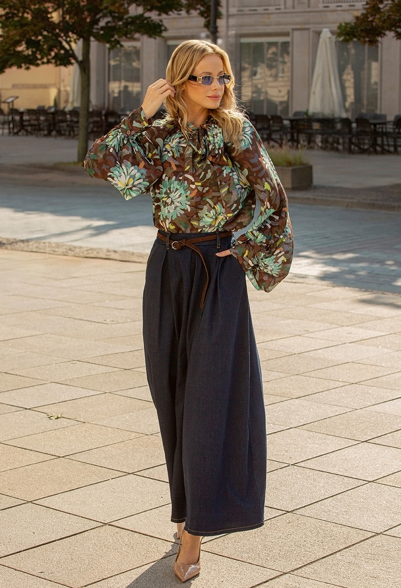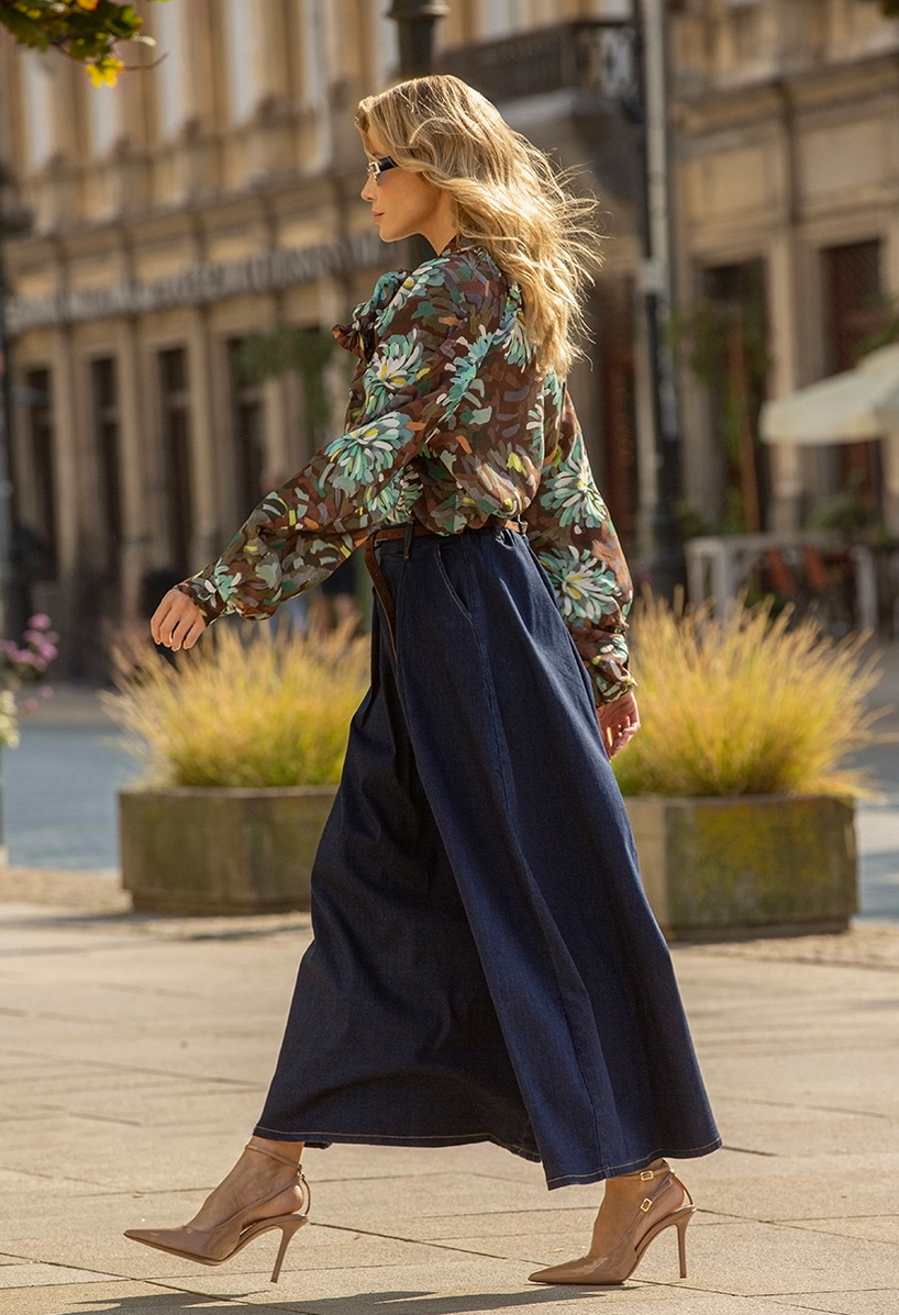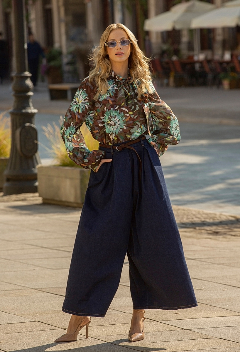 Szerokie spodnie jeansowe ciemno niebieskie z paskiem