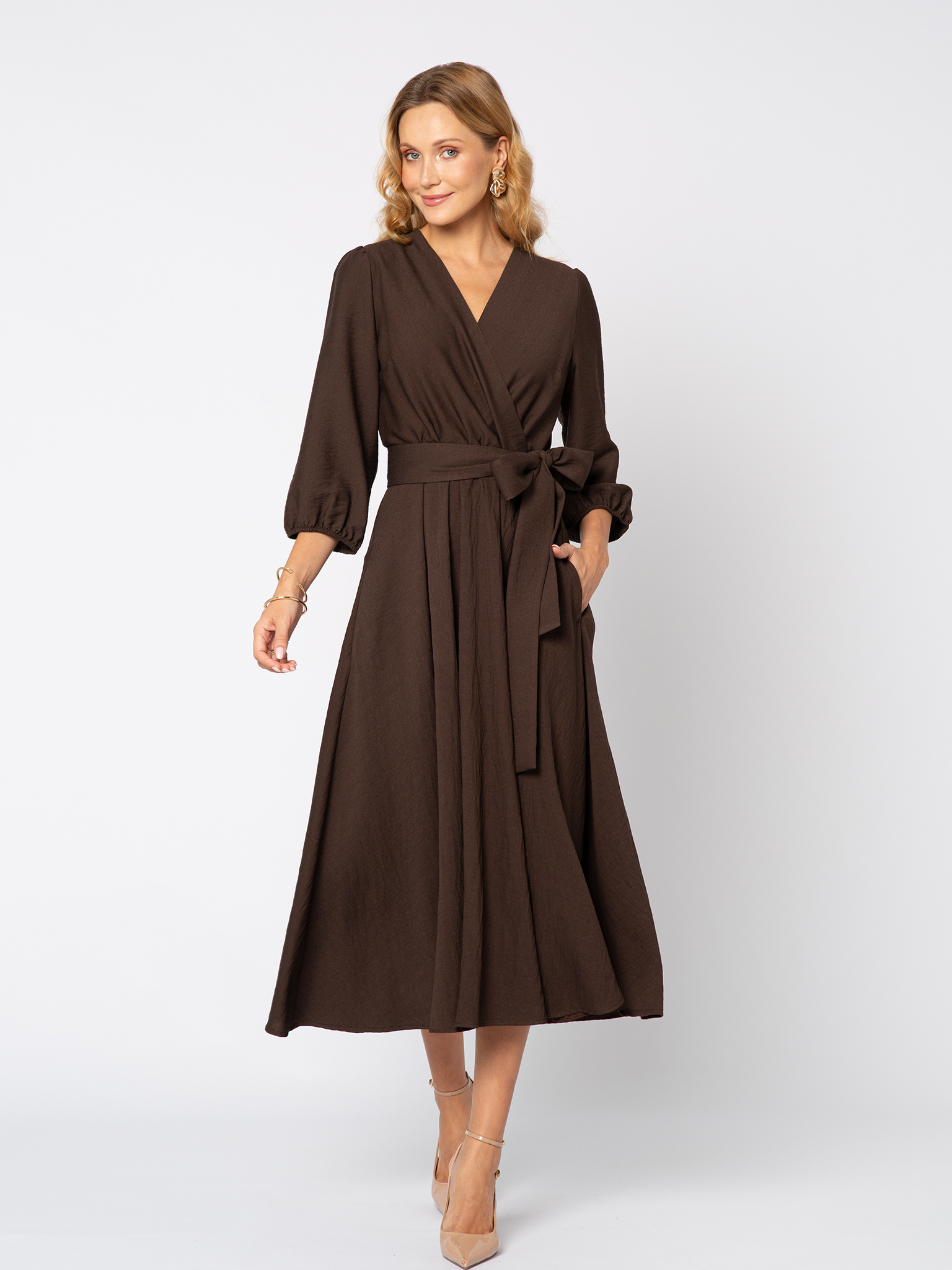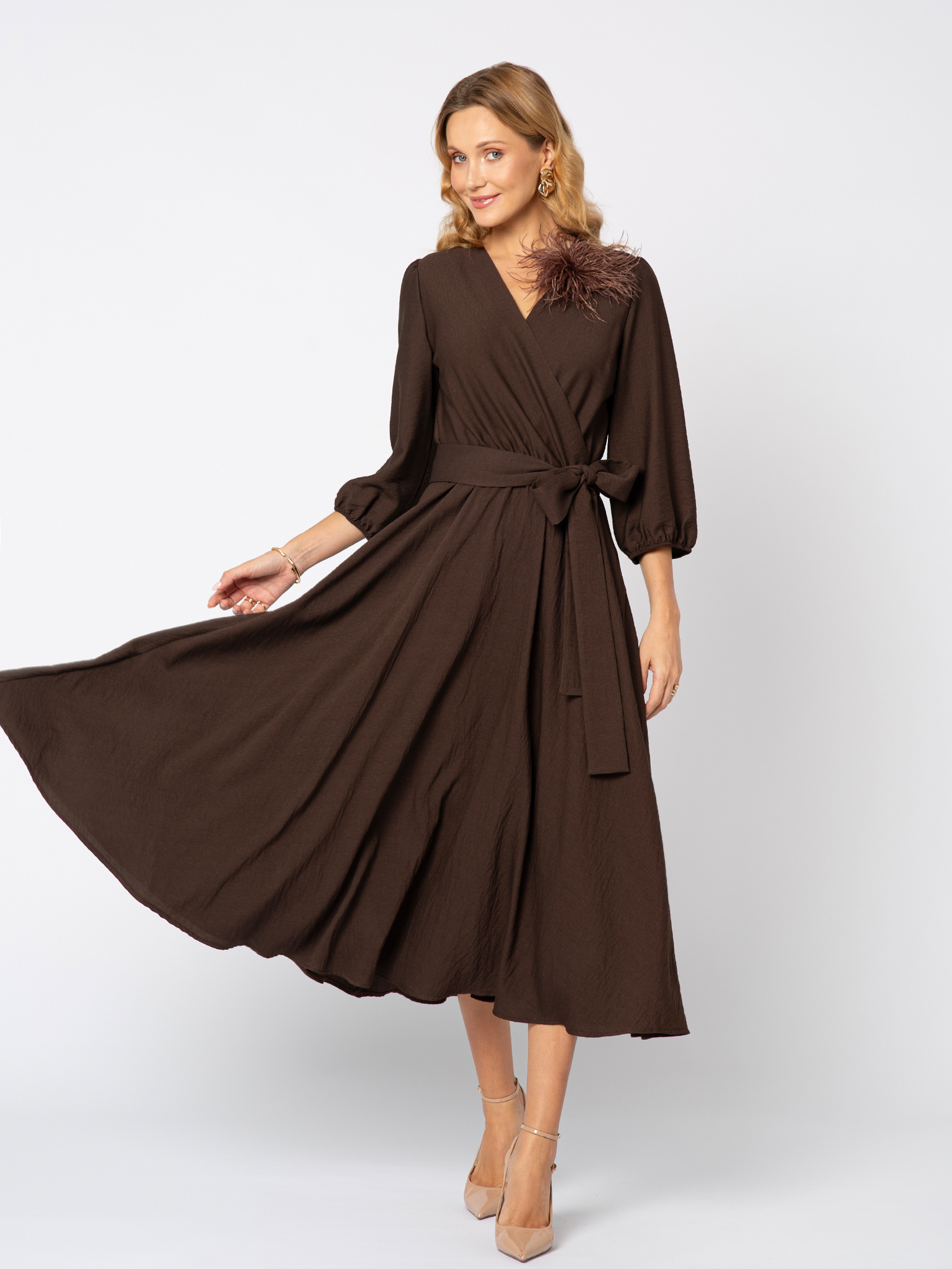 Czekoladowa sukienka z wiskozy Amelie