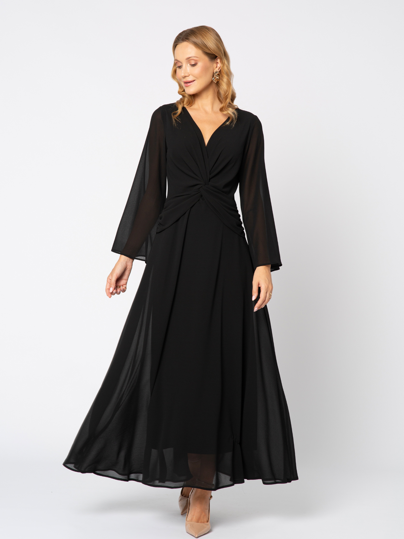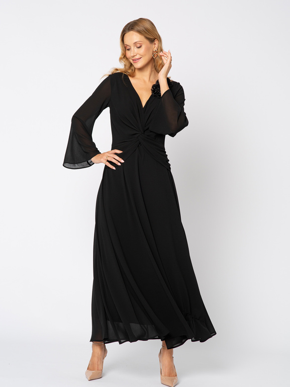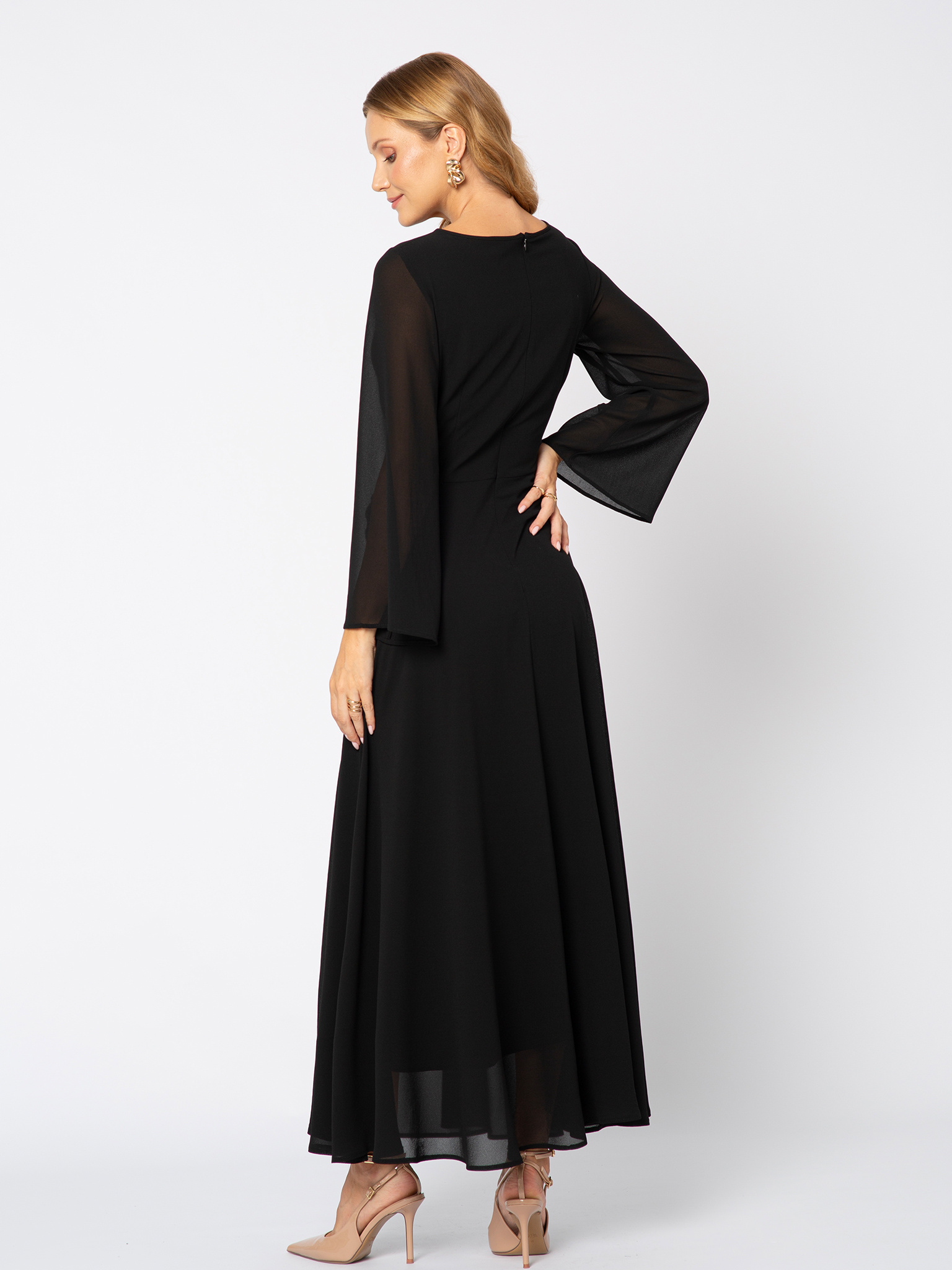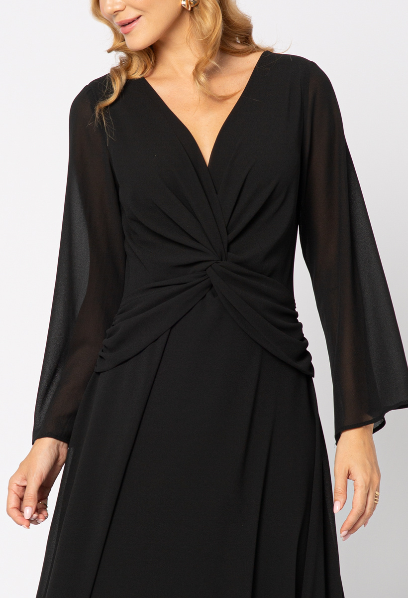 Czarna sukienka z ozdobną talią i szerszym rękawem Magdalene