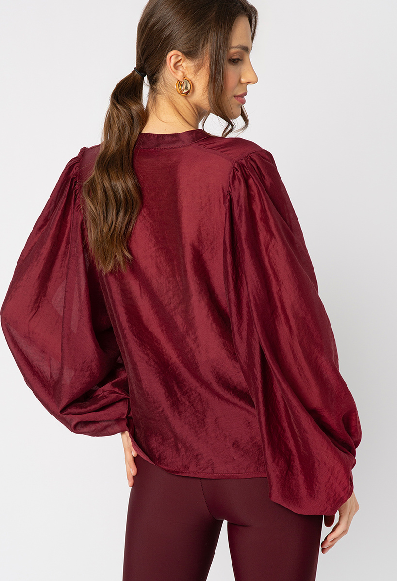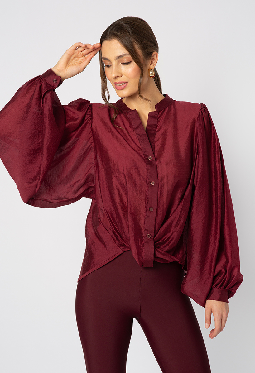Bordowa koszula z layocellu z wiązaniem