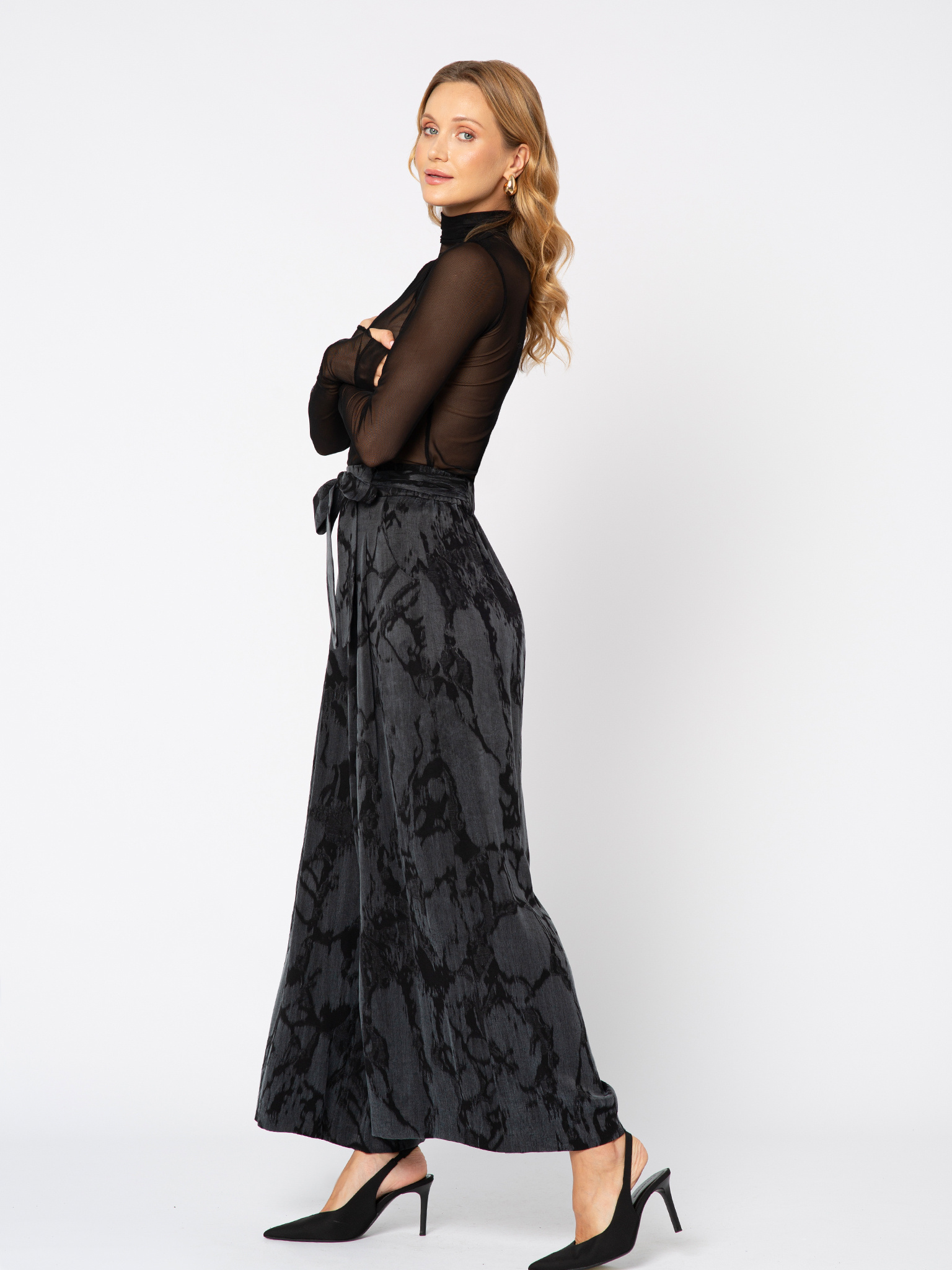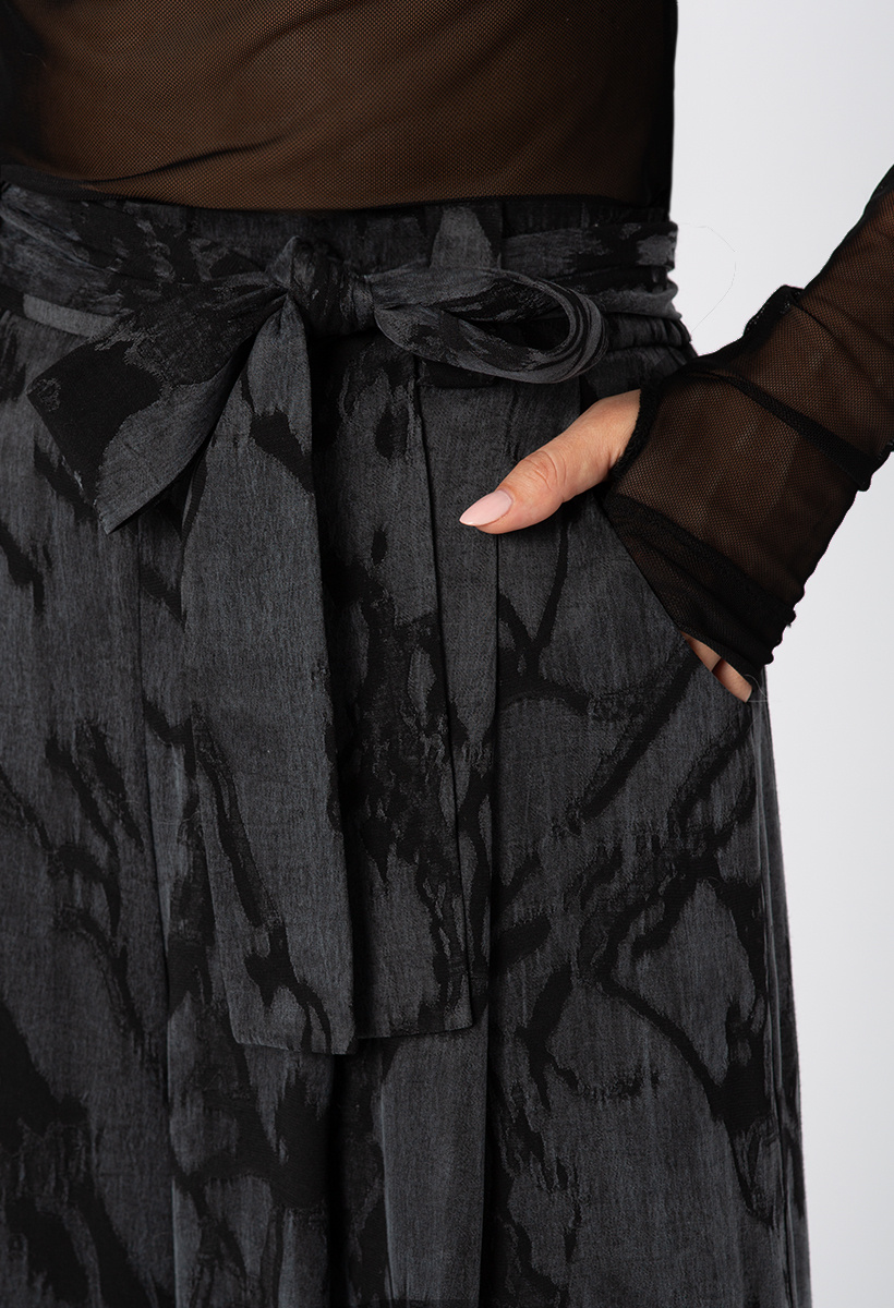 Szerokie szaro-czarne spodnie z wiązaniem Michelle