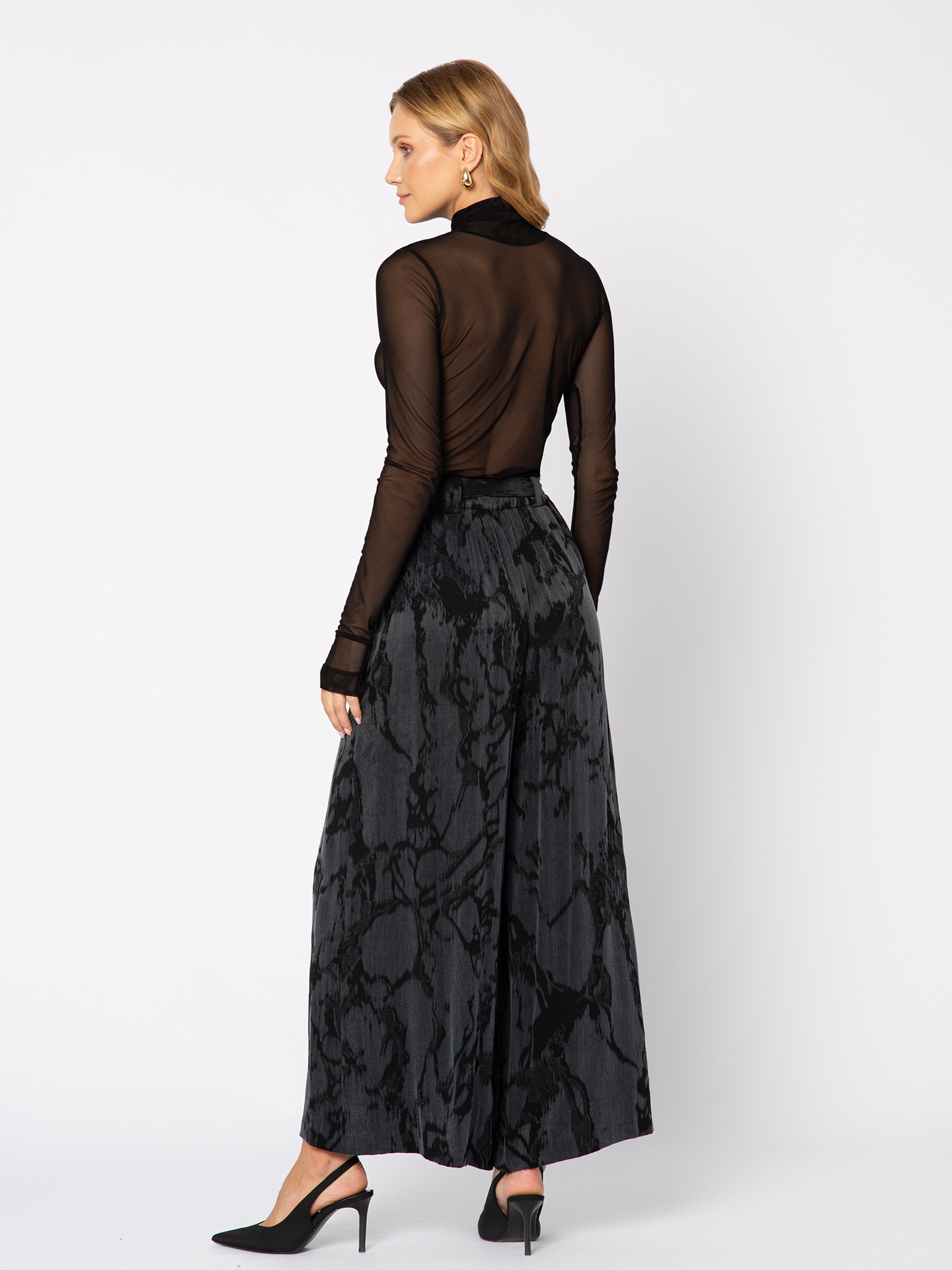 - Wyrafinowany szyk w najwygodniejszym wydaniu, sprawiają, że sylwetka nabiera elegancji i lekkości rodem z paryskich ulic. Wysoki stan pięknie podkreśla talię. Szerokie nogawki z delikatnym plisowaniem z przodu układają się miękko przy każdym ruchu.