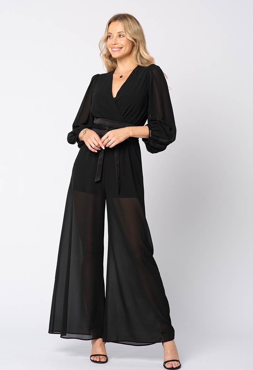 Poczuj paryską lekkość i tajemniczy urok – kombinezon Louise otula ciało zwiewnym szyfonem, który subtelnie odsłania i intryguje. Kopertowy dekolt podkreśla linię szyi i dekoltu, a lekko transparentne bufiaste rękawy dodają całości romantycznego charakteru. W talii miękka gumka i pasek typu „Japończyk” – przeplatany z tyłu i wiązany z przodu jak w kimono – pięknie akcentują sylwetkę. Proste, transparentne nogawki w zestawieniu z krótką podszewką w formie szortów tworzą efektowną grę światła i faktur. Louise to kwintesencja francuskiej elegancji w nowoczesnym wydaniu – idealny wybór na wieczorne wyjścia, gdy chcesz wyglądać szykownie i zmysłowo.