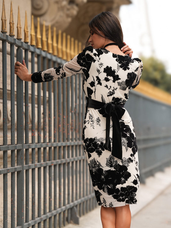 Sukienka w kolorze ecru z czarnym flokowanym wzorem Tosca