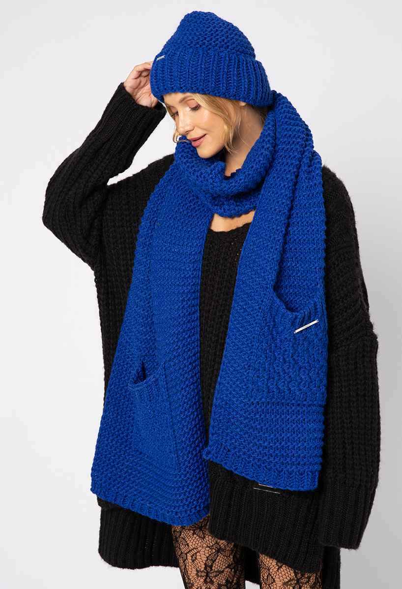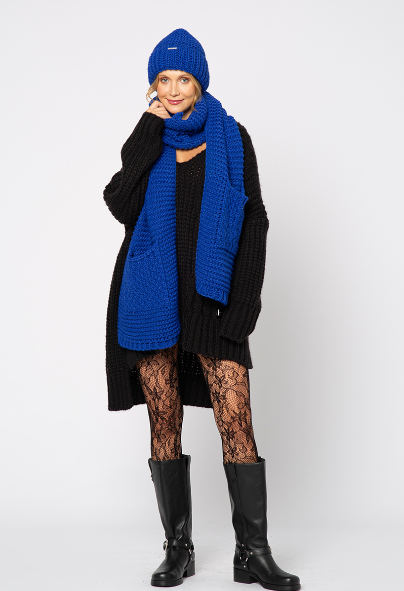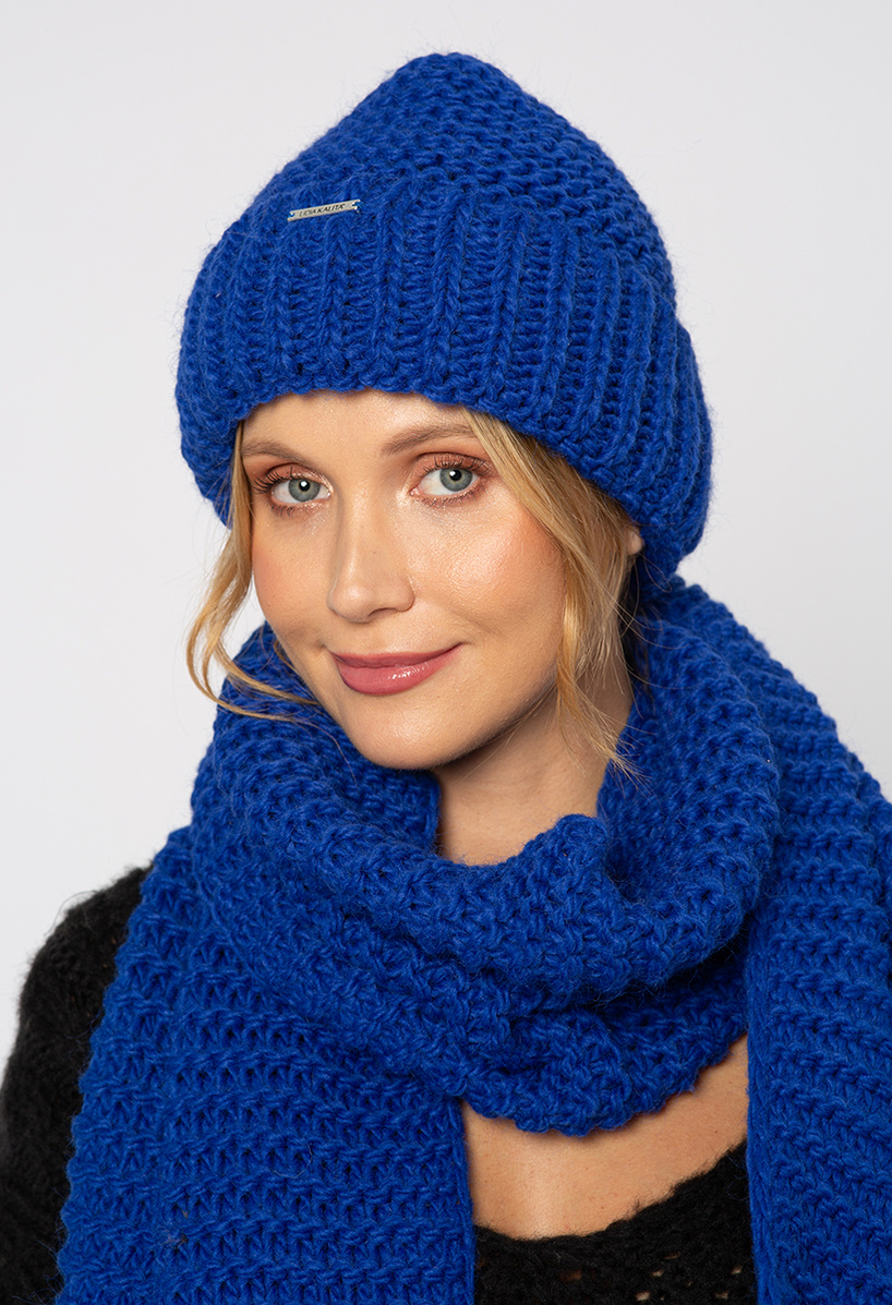 Kobaltowy szal w komplecie z czapką