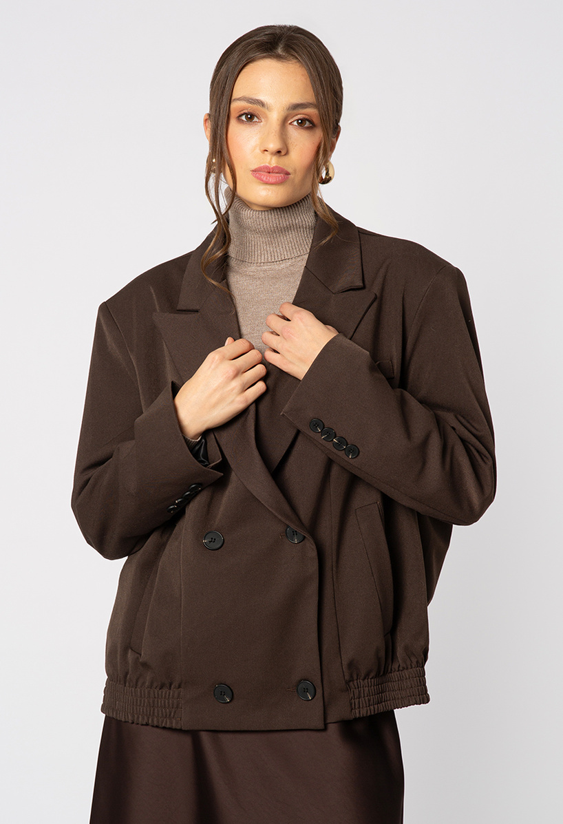 Brązowa marynarka dwurzędowa ze ściągaczem z tyłu