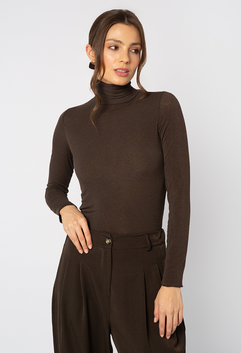 Brązowy wiskozowy golf z kaszmirem