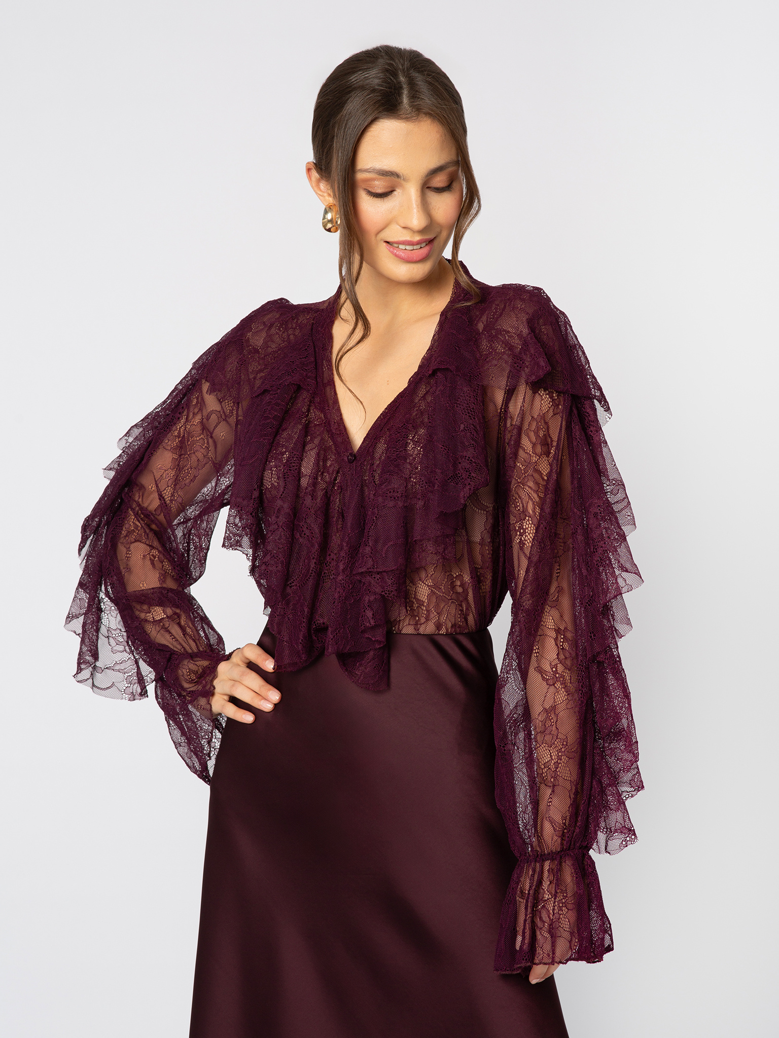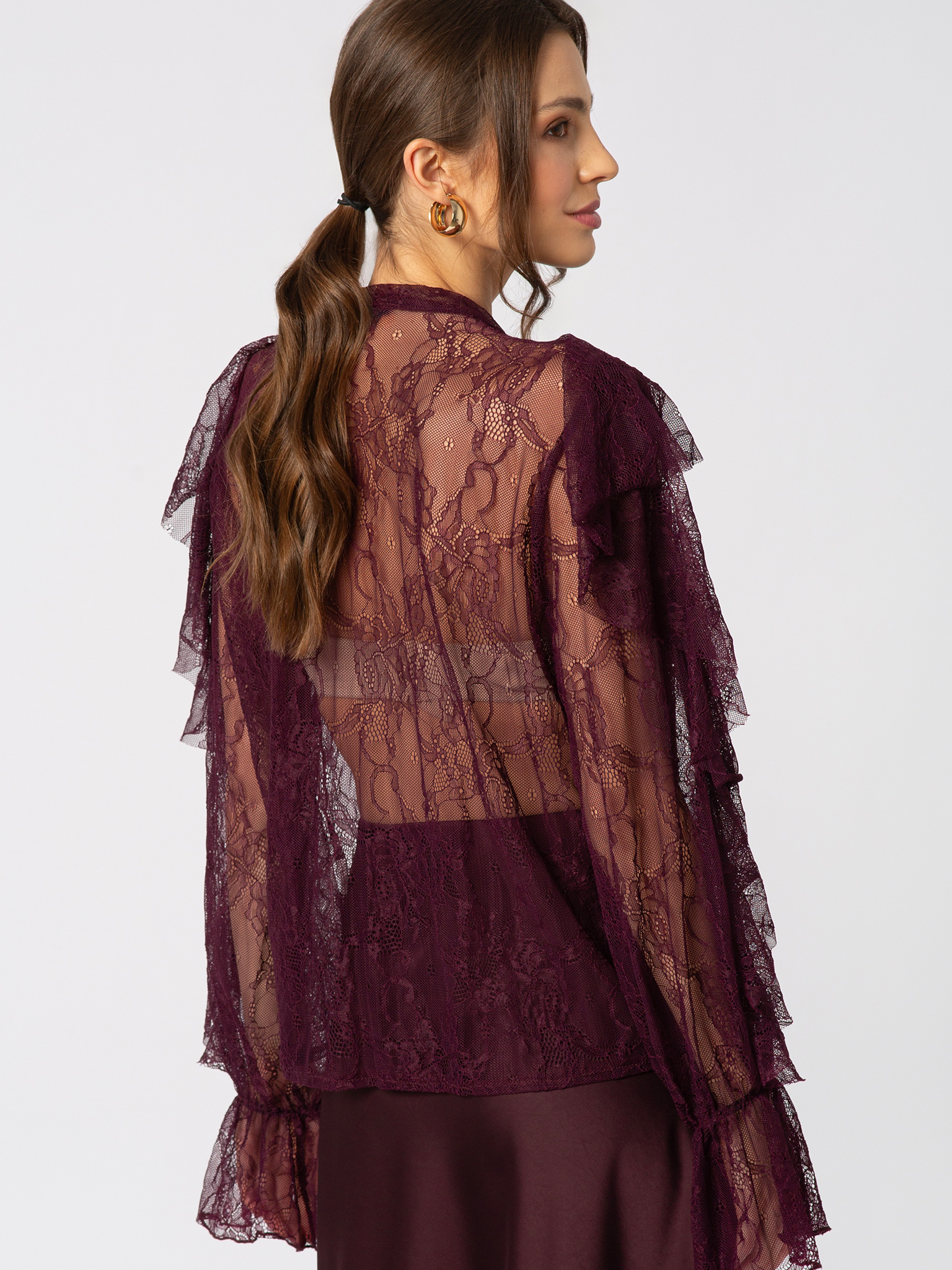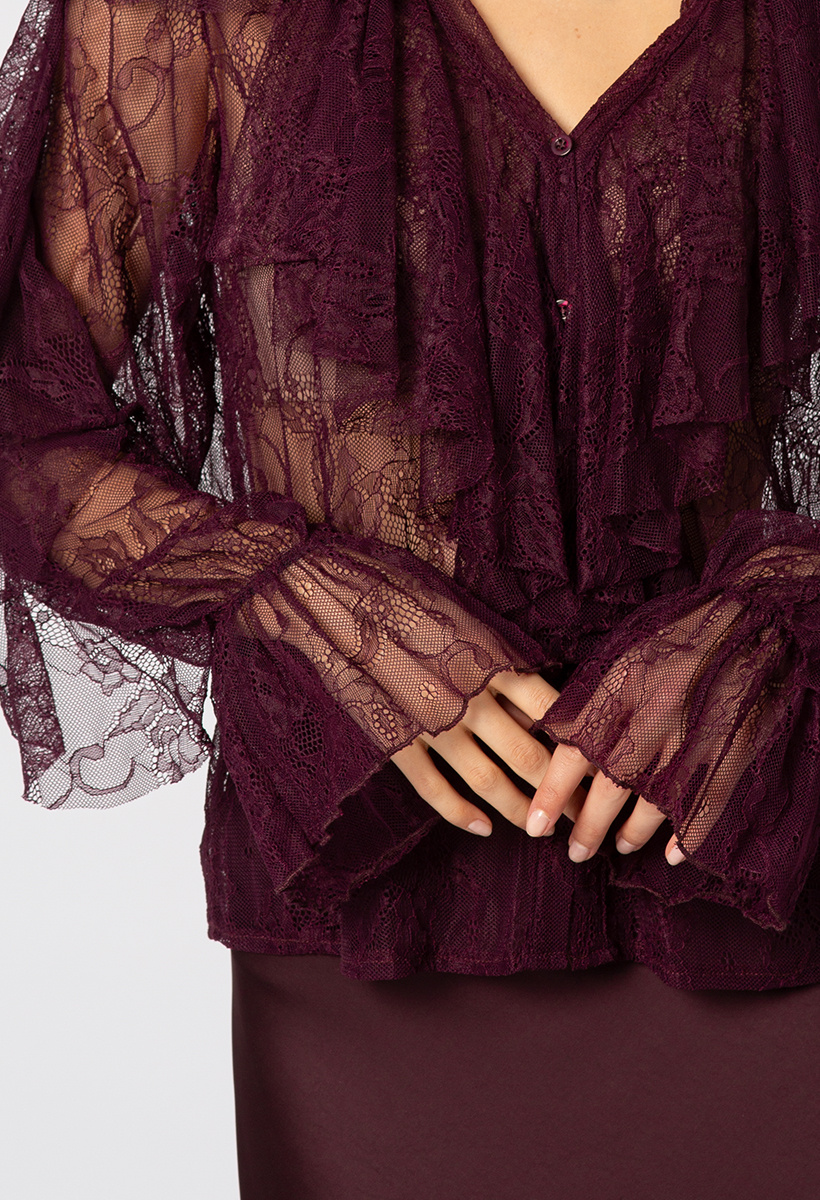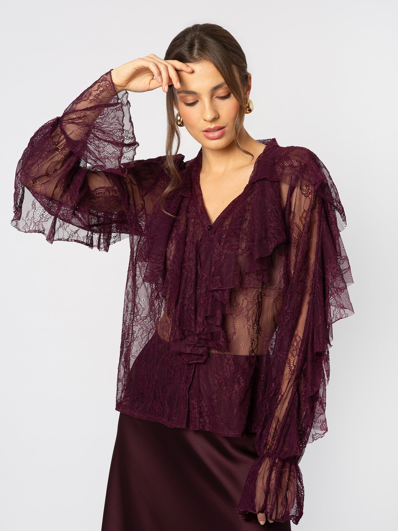 Koronkowa koszula z falbanami w kolorze oberżyny