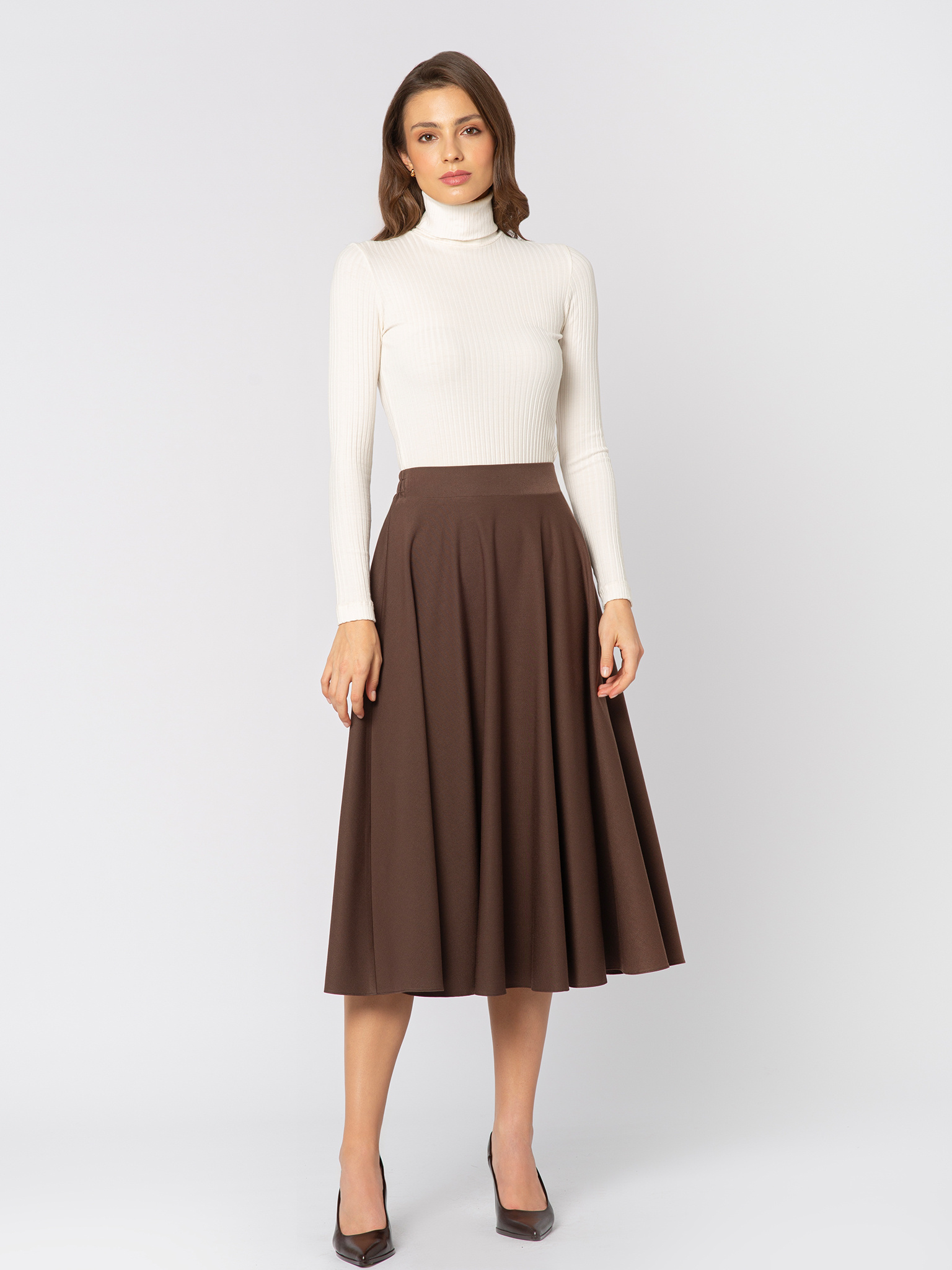 Brązowa rozkloszowana spódnica Simon