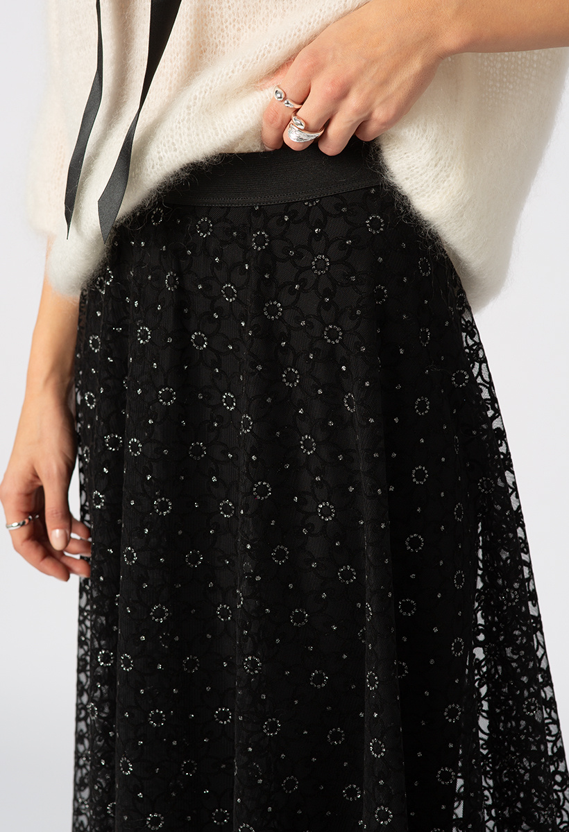 Czarna tiulowa spódnic z flokowymi kwiatami Manon