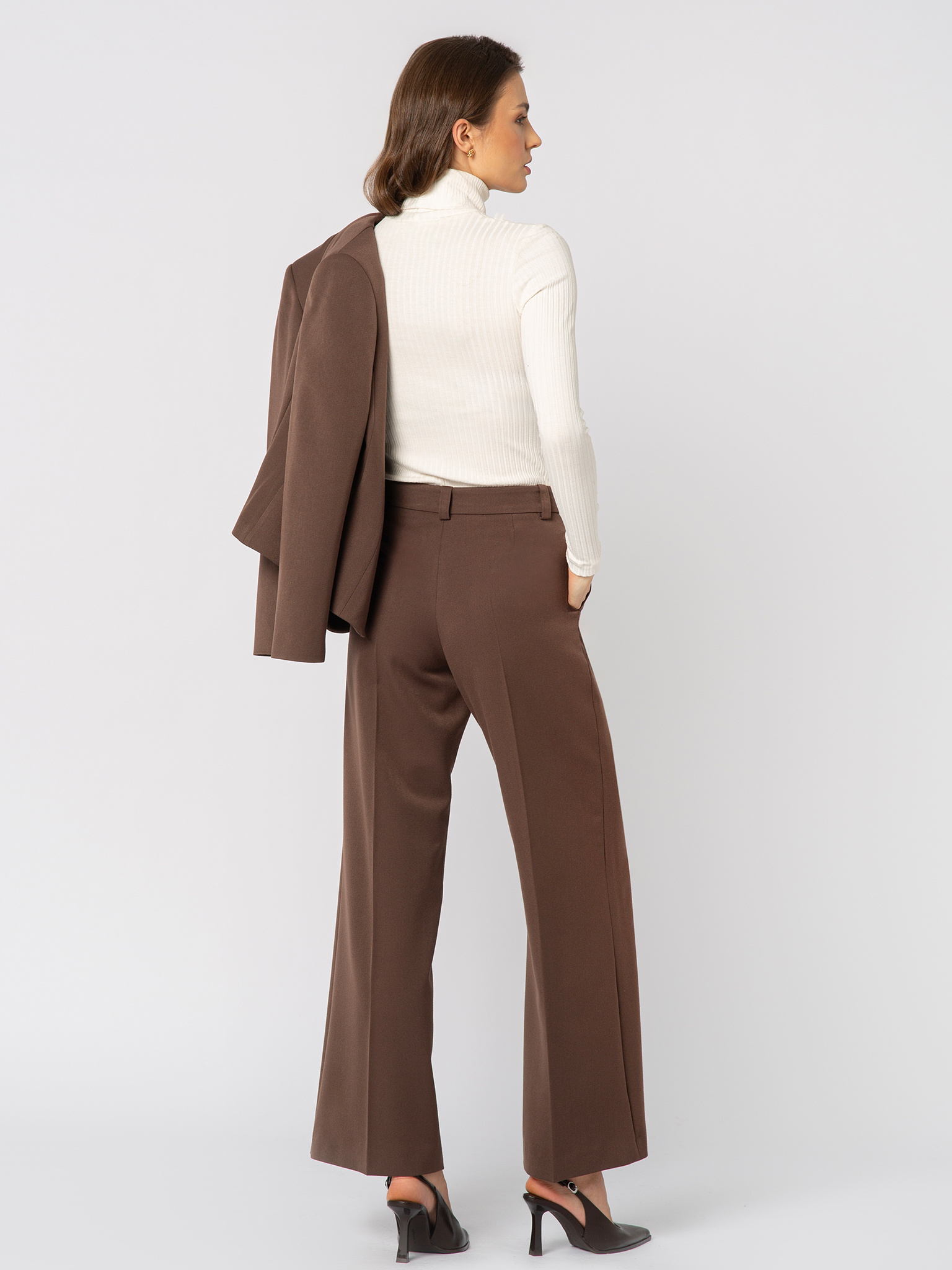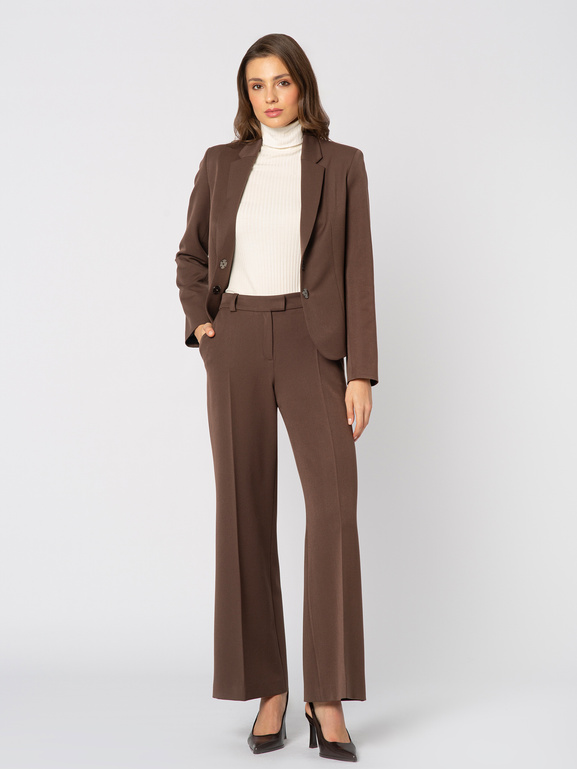 Brązowe spodnie w kant z szerszą nogawką Paola