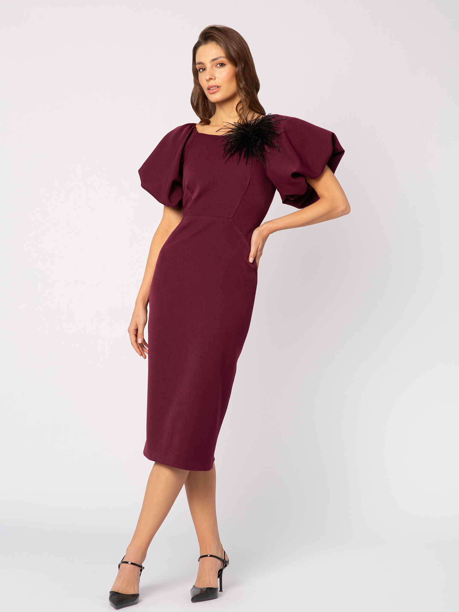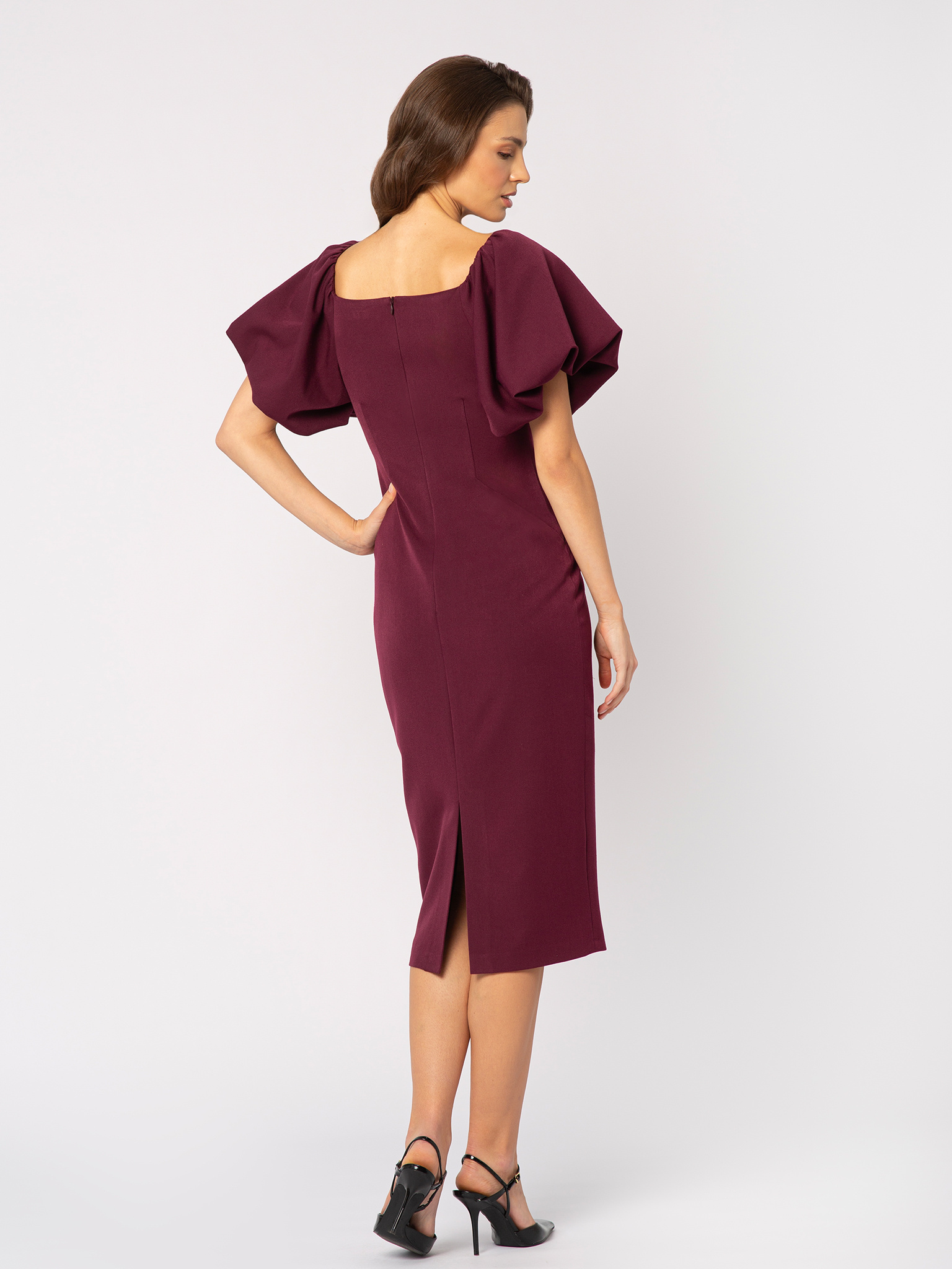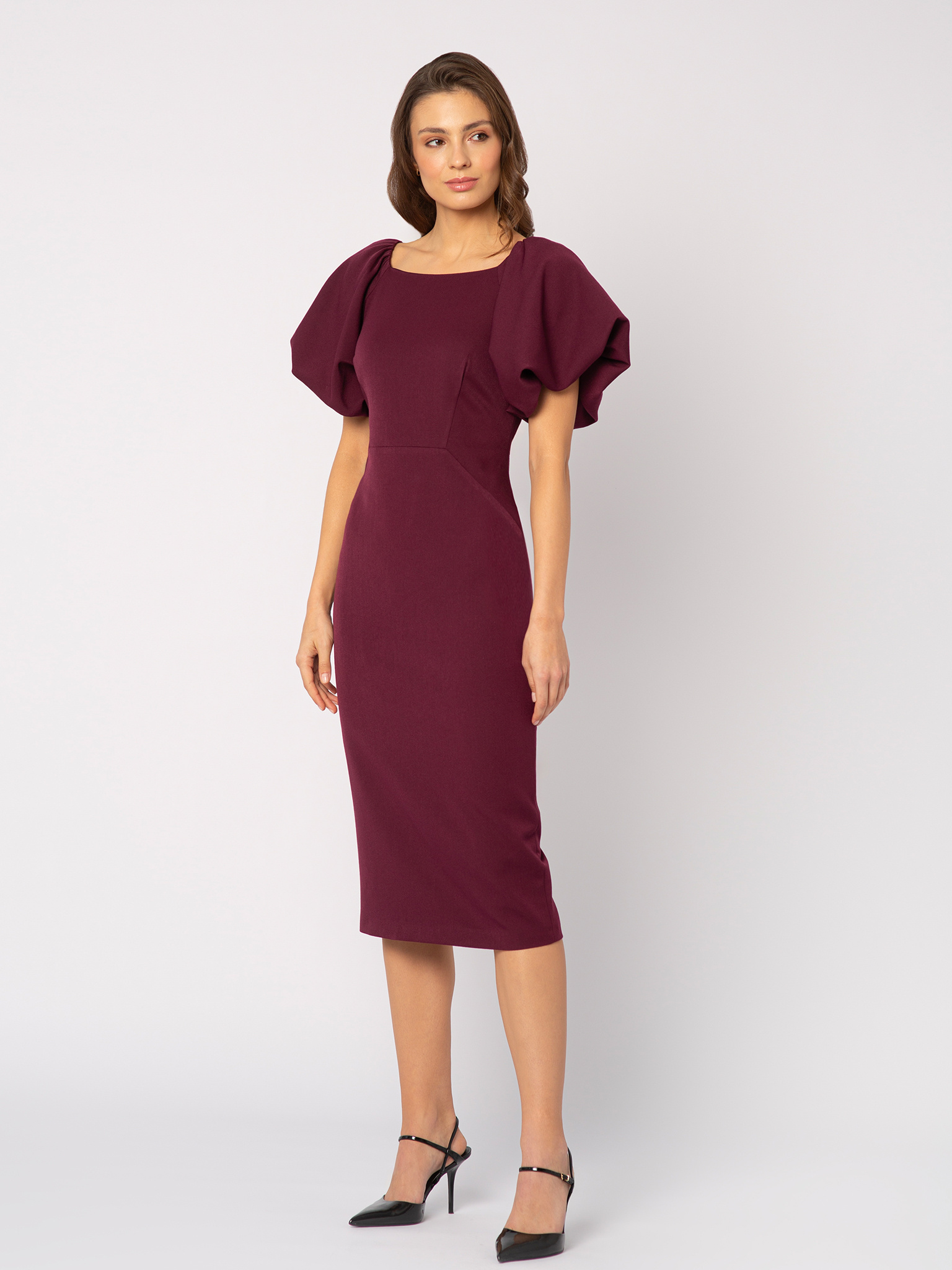 Sukienka z bufkami w kolorze czerwonego wina