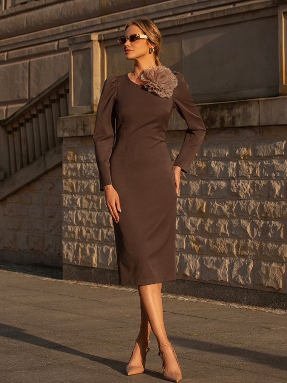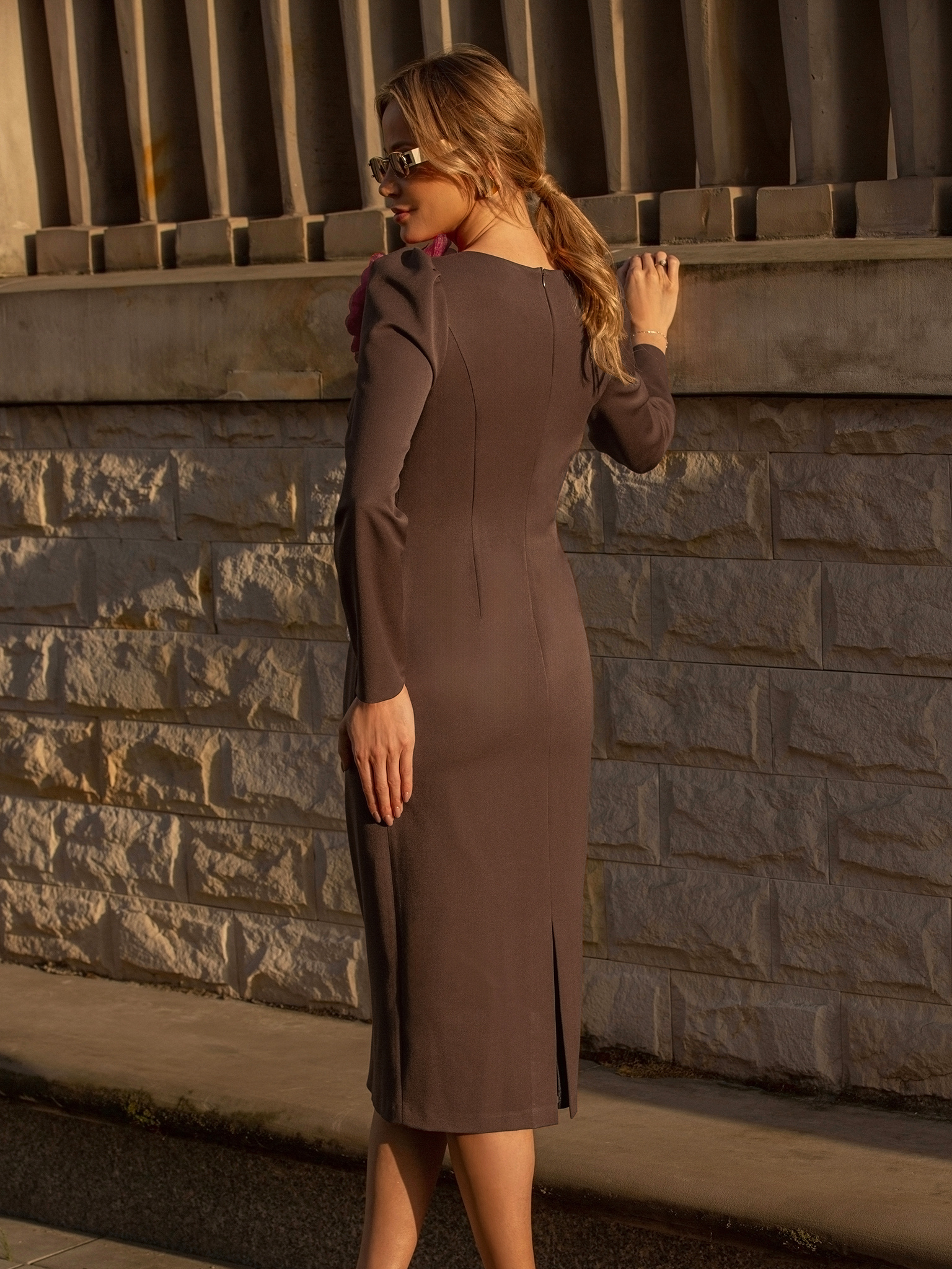 Dopasowana czekoladowa sukienka z długim rękawem Rebecca