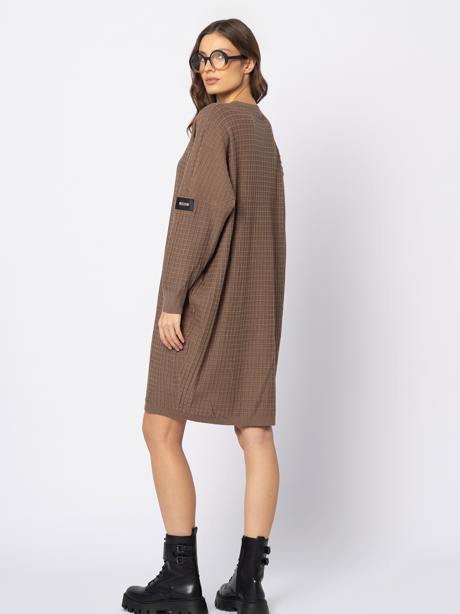 Brązowa sukienka z dzianiny w kwadratowy splot
