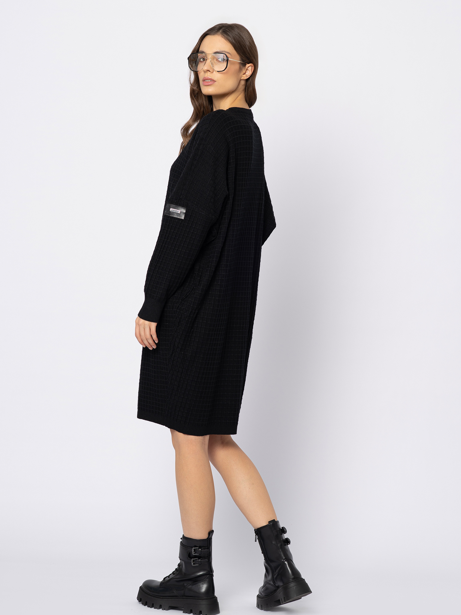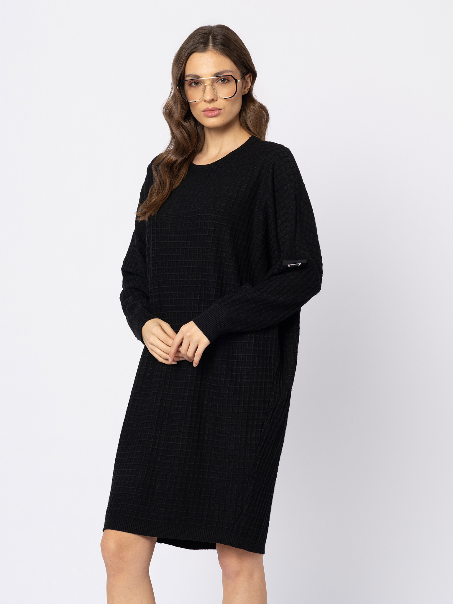 Czarna sukienka z dzianiny w kwadratowy splot
