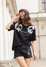 Czarny T-shirt z ozdobą sznur pereł Milano