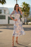 Niebieska sukienka z siatki w beżowe kwiaty Mia