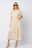 Beżowa sukienka wiskoza z lnem z ozdobnymi broszkami z rafii