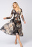 Czarna sukienka w beżowo-złote wzory z drapowaniem w talii Aurore