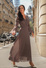 Sukienka w kolorze mocha z ozdobną talią i szerszym rękawem Magdalene