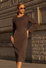 Dopasowana czekoladowa sukienka z długim rękawem Rebecca